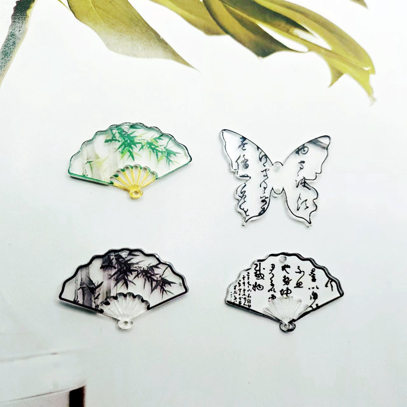 アクリル立体蝶々古風ヘアピンヘアアクセサリーペンダントDIYパーツイヤリングペンダントDIYアクセサリージュエリー水墨画