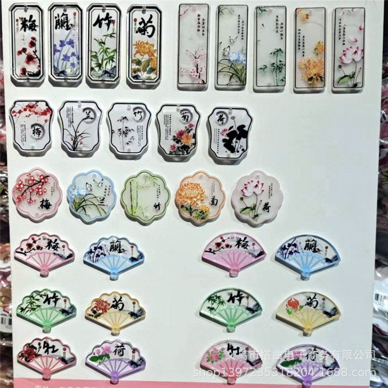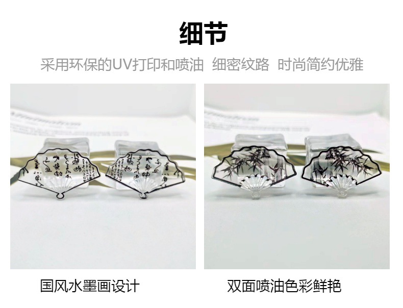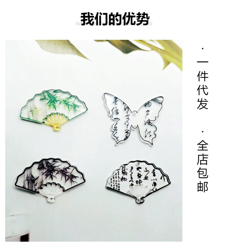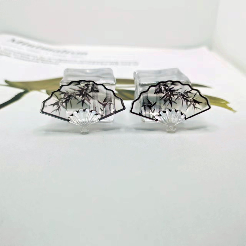 アクリルレトロ竹扇子アクセサリーペンダントDIY文芸中国風ストラップイヤリングキーホルダー部品