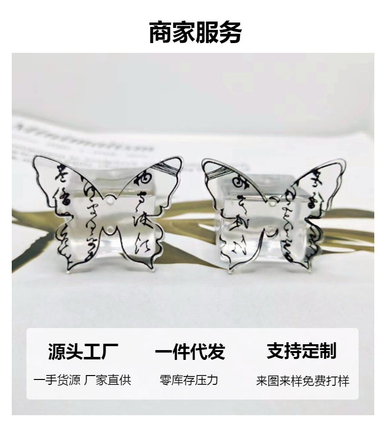 新商品のアクリルは貝殻の立体蝶の部品をまねます。