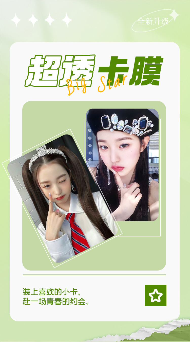 20シルクの韓娯楽の小さいカードの膜の3寸の保護の膜の平口のカードのカバーは厚くて、カードを切らないで透明なポップコーンのカードを切りません。