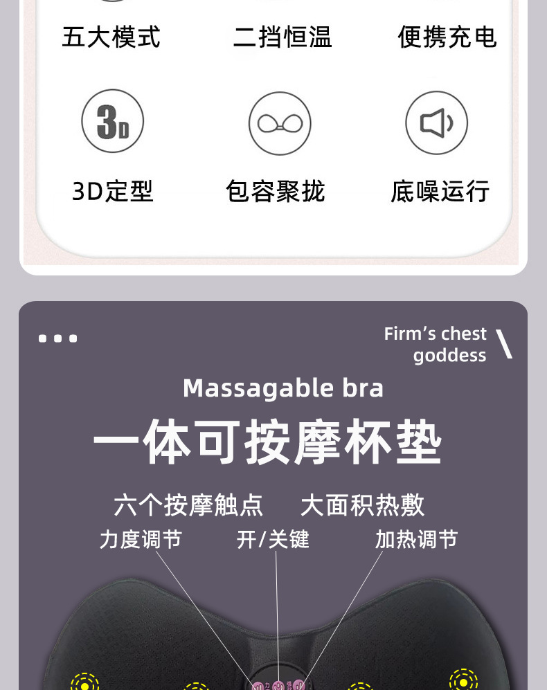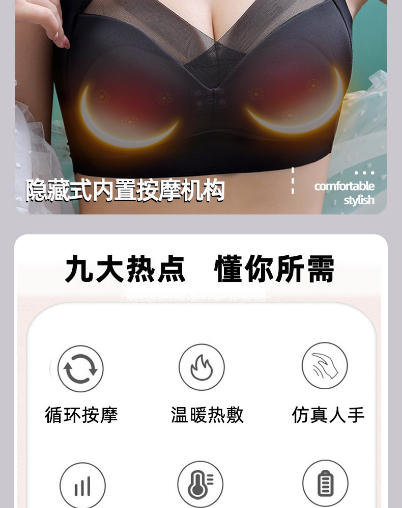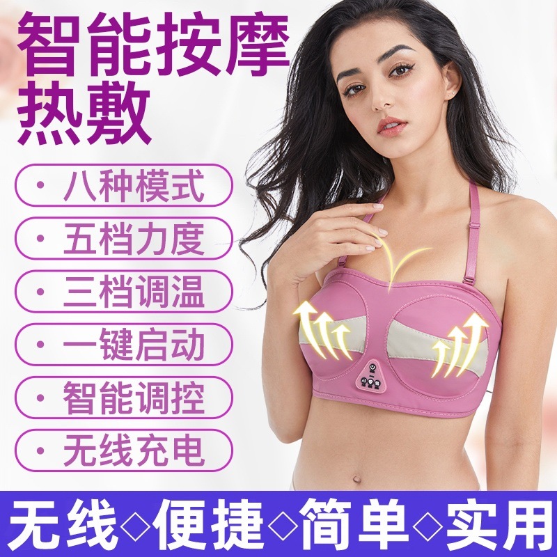 跨境胸部按摩仪女用电动智能恒温震动乳房按摩内衣文胸按摩器胸罩