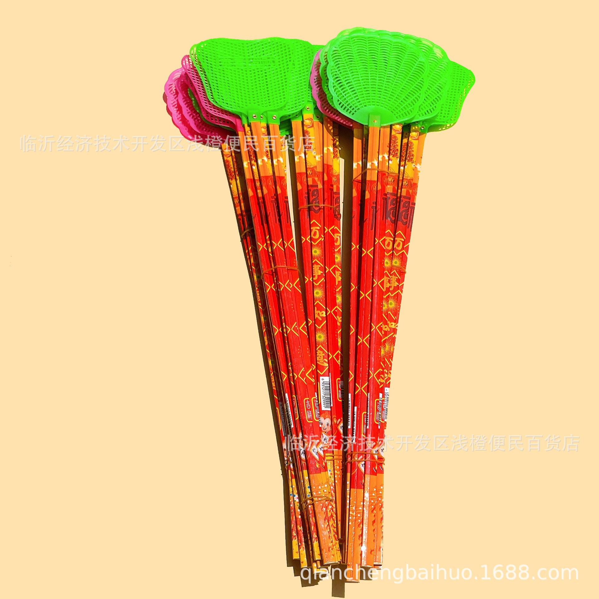 竹ハンドル付きの長いハエたたき、鳳凰の尾の貝殻のハエたたき、プラスチック製のヘッド、熟したゴム、耐久性のある蚊よけ、臨沂ハエたたき