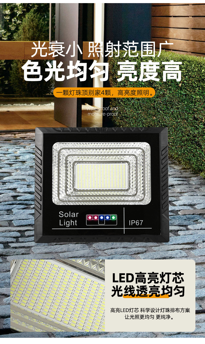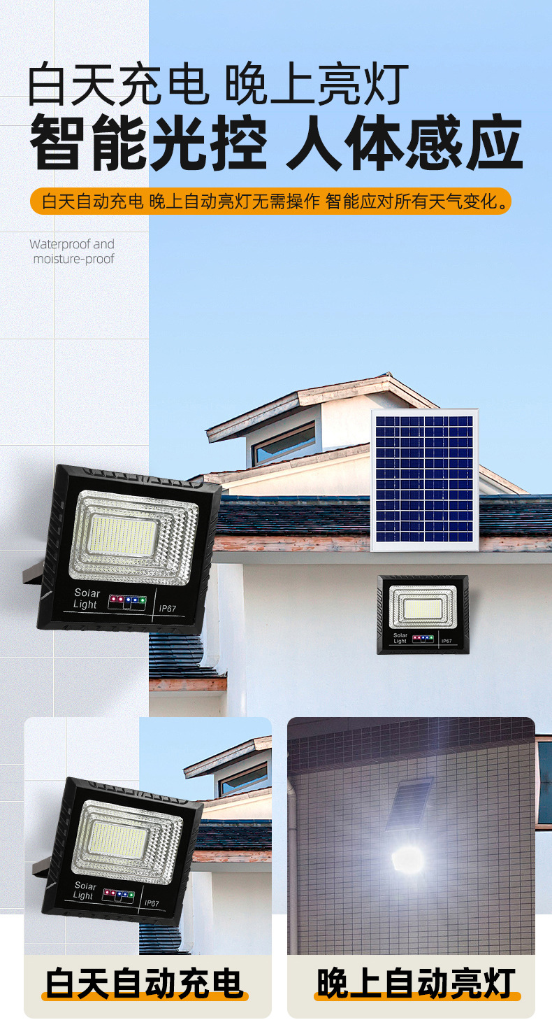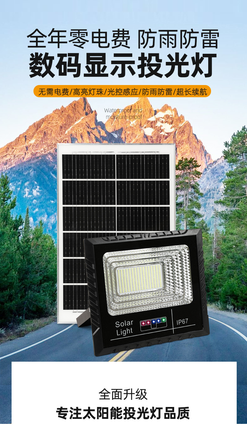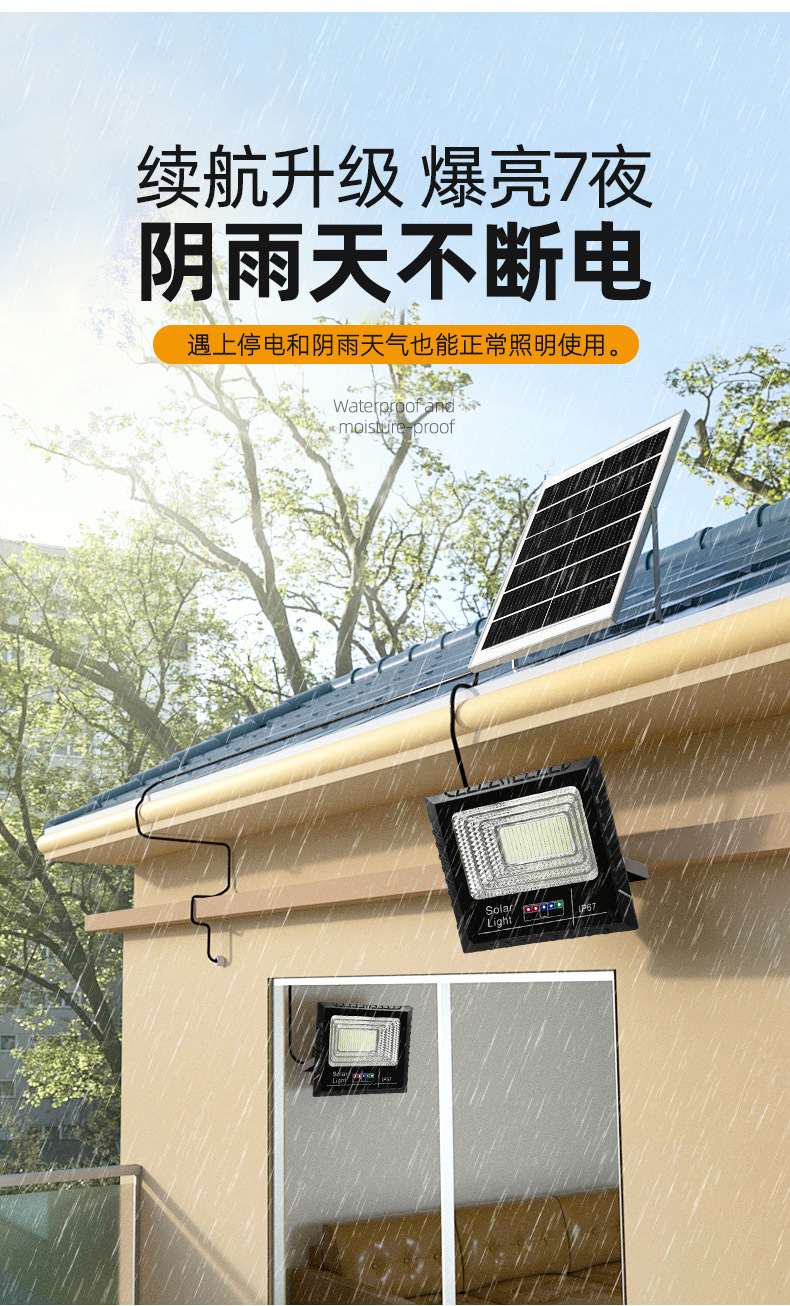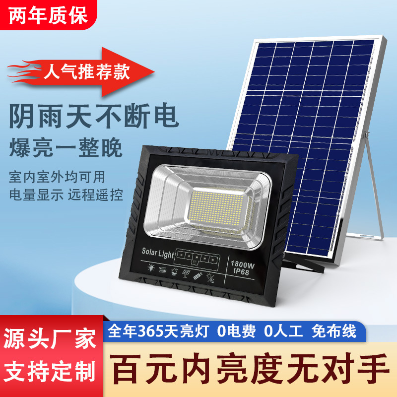 东南亚太阳能灯电显款户外庭院投光灯爆亮家用大功率太阳能照明灯