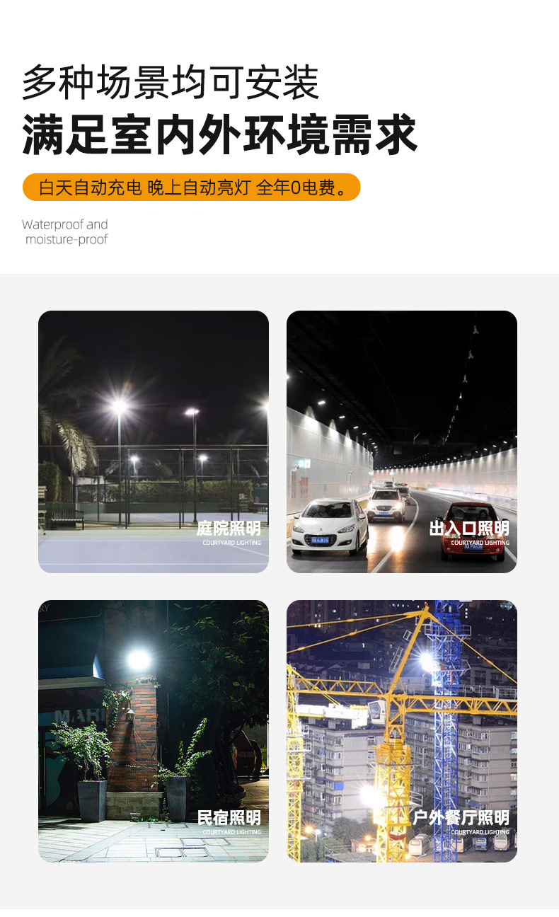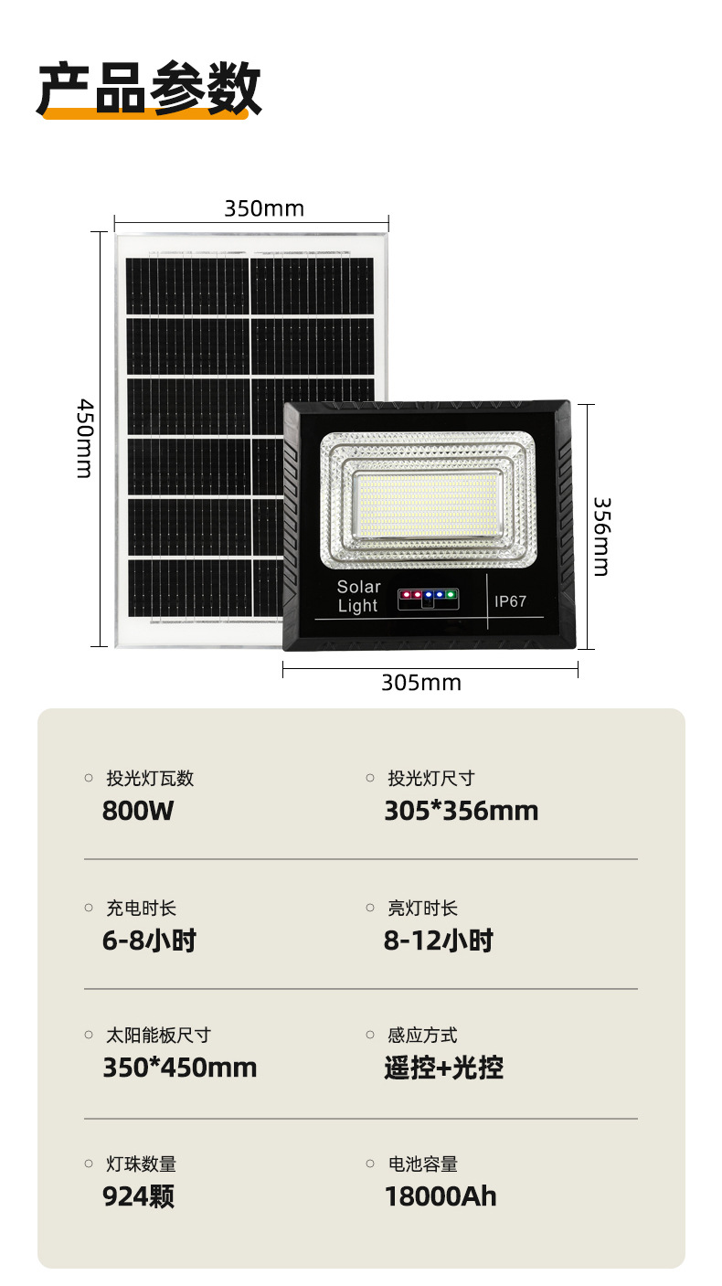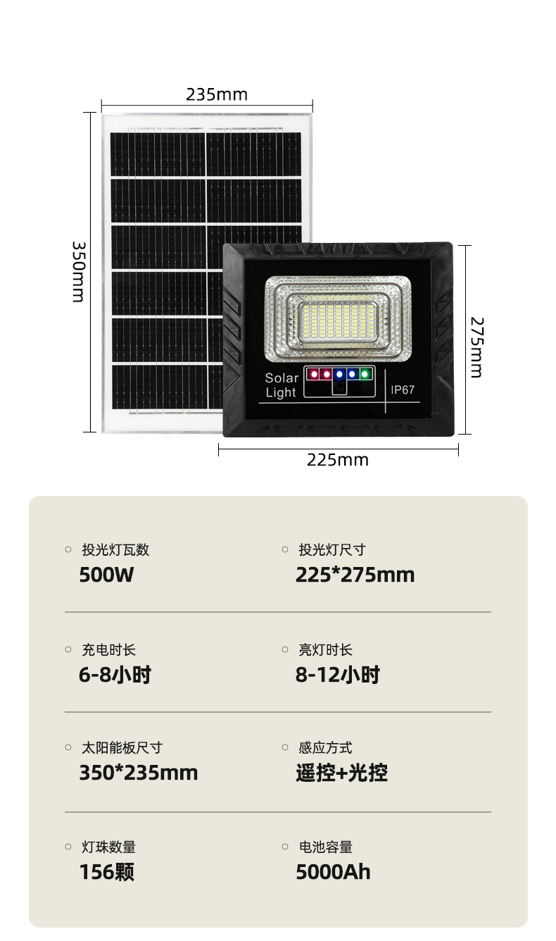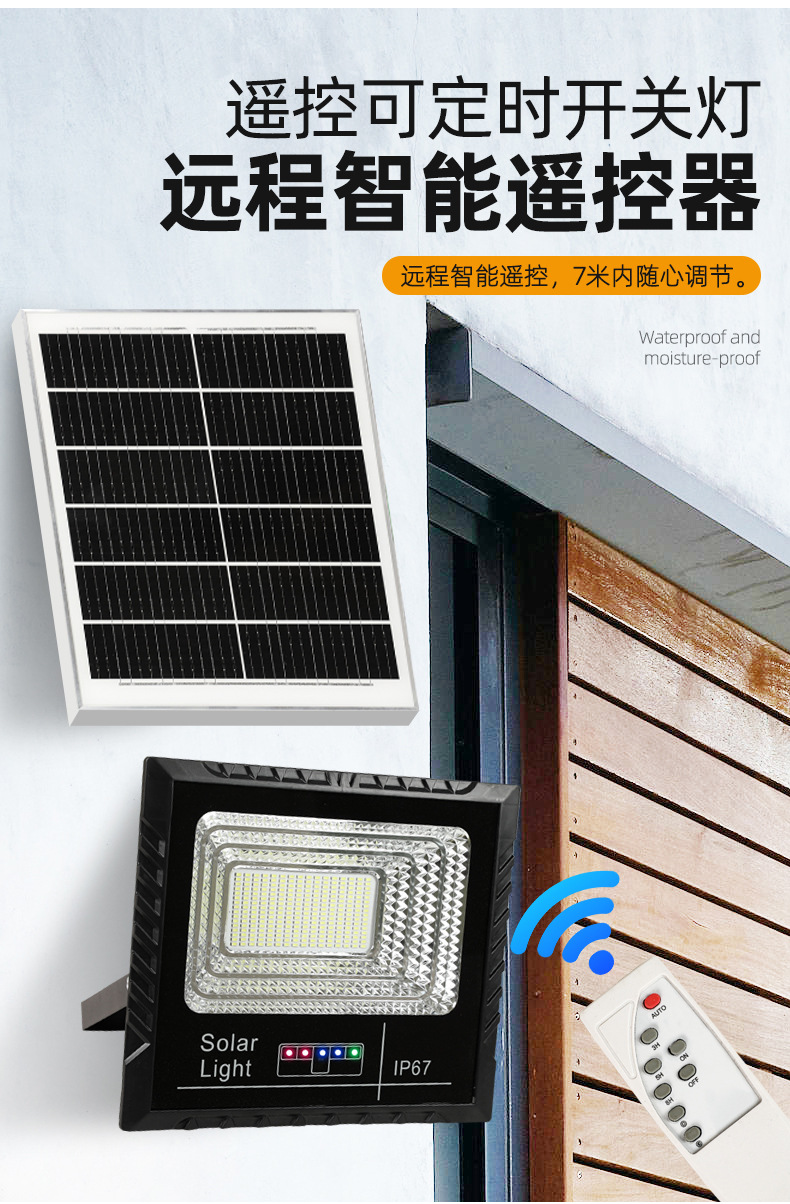 东南亚太阳能灯电显款户外庭院投光灯爆亮家用大功率太阳能照明灯