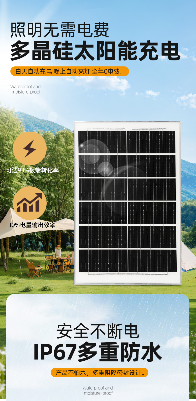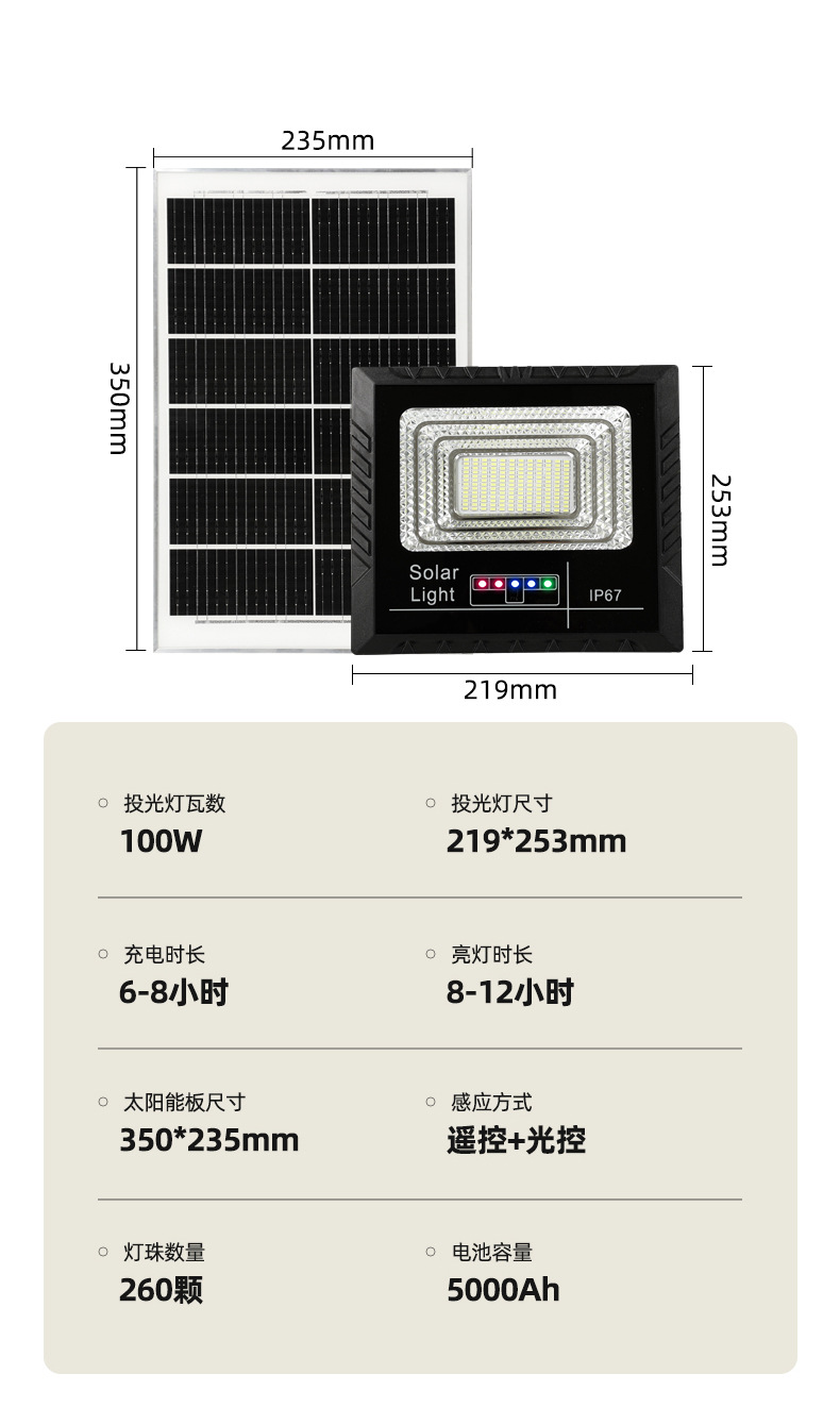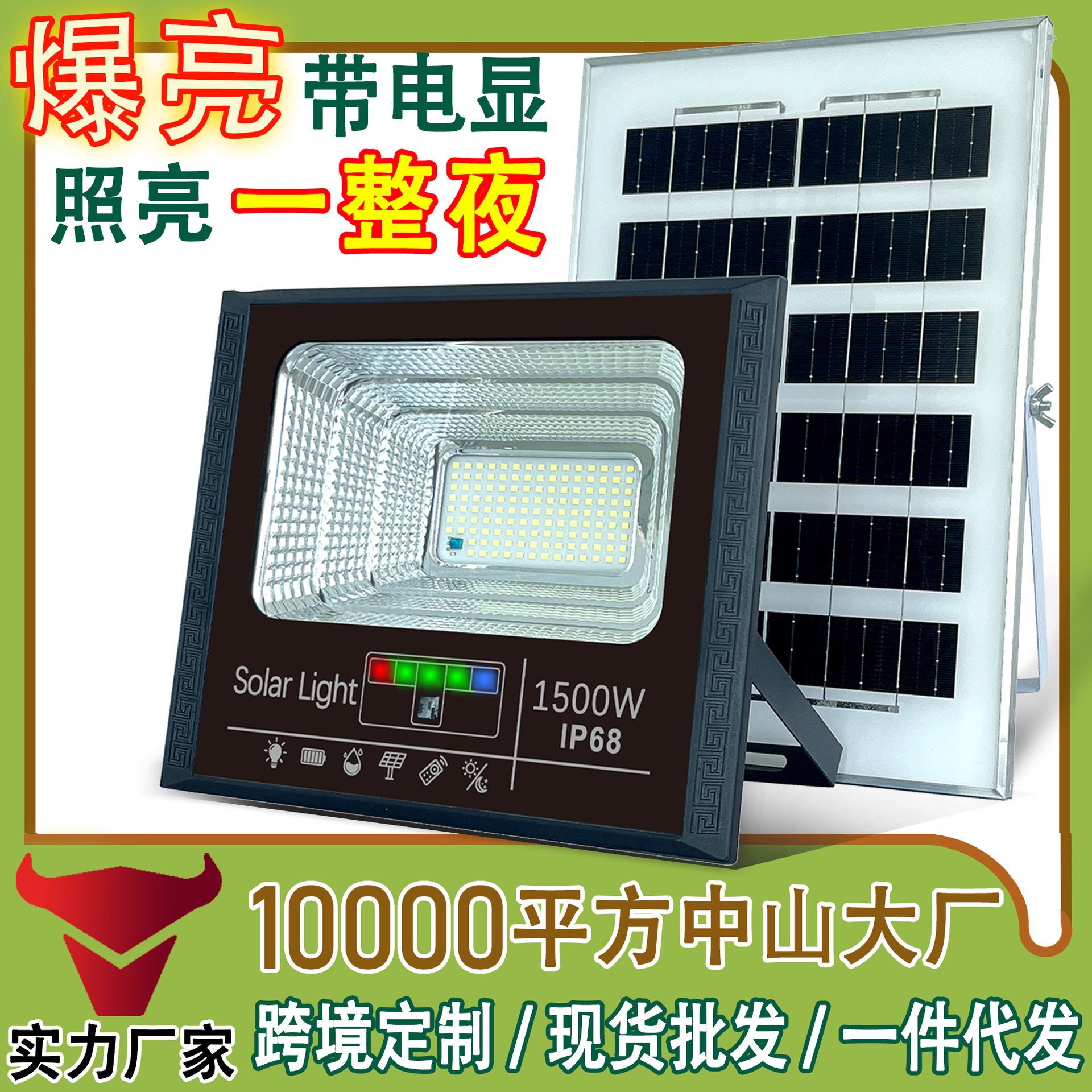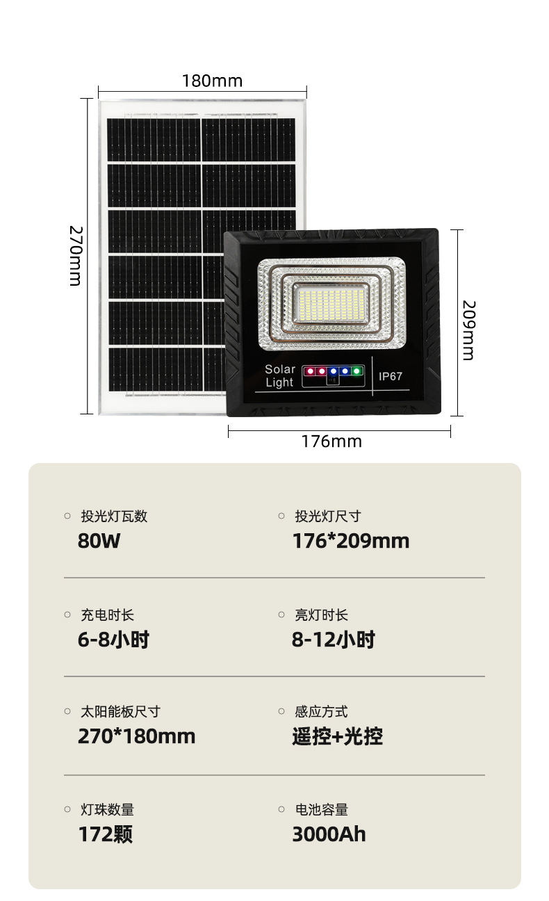 东南亚太阳能灯电显款户外庭院投光灯爆亮家用大功率太阳能照明灯