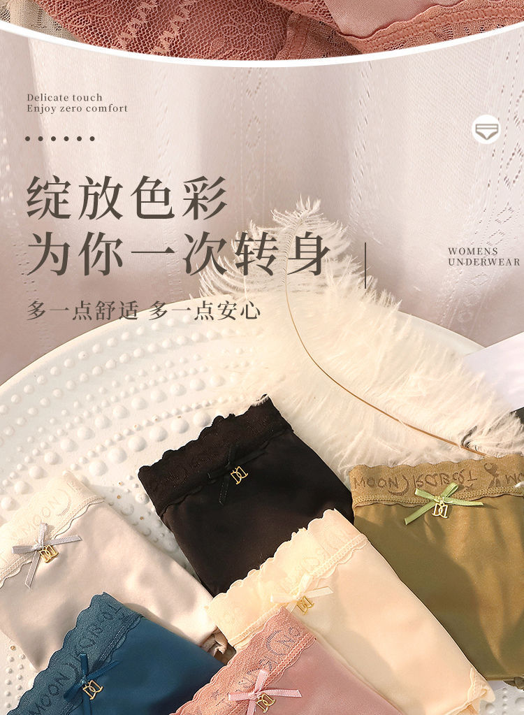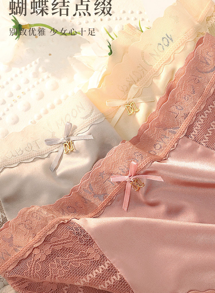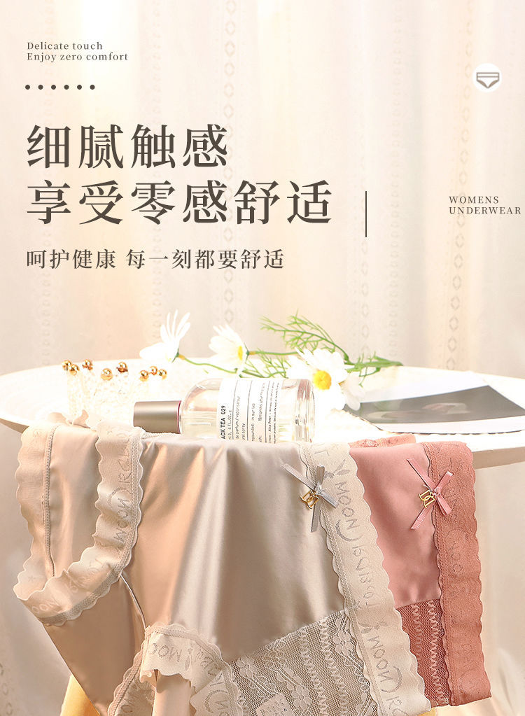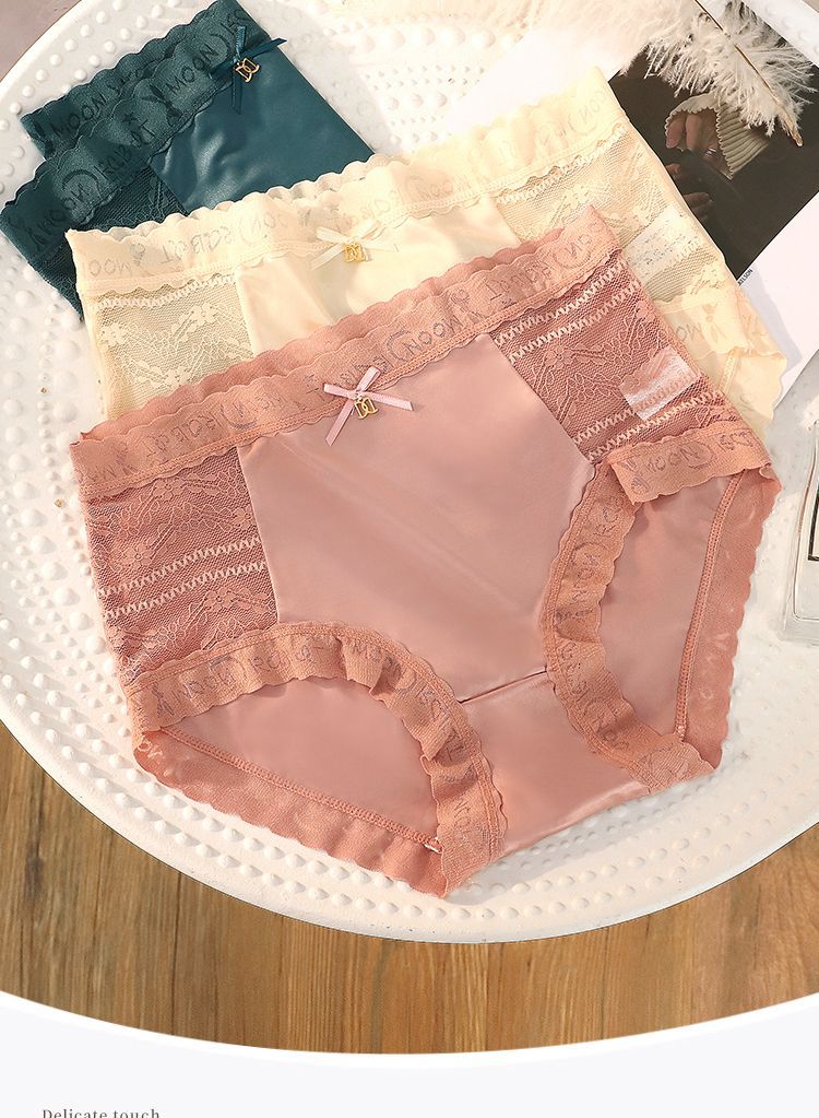 2023年の新型高腰レース光沢下着甘いサテンシルク高弾女性下着