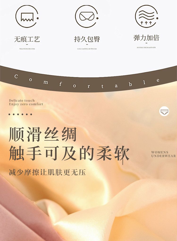 冰丝少女性感高腰无痕透气蚕丝裆绸缎高弹力高腰大码提臀三角裤女