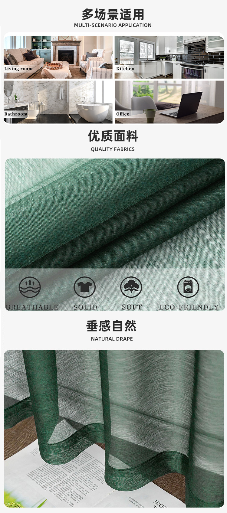 紹興柯橋対外貿易クロスボーダー翡翠緑透明カーテンカーテン寝室客間緑純色薄紗窓糸