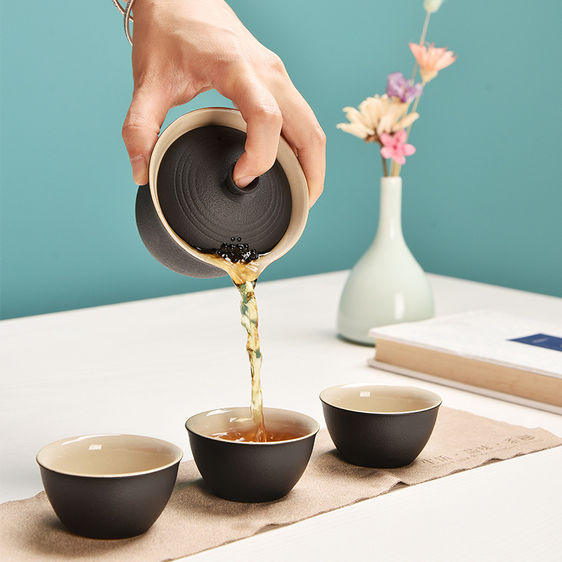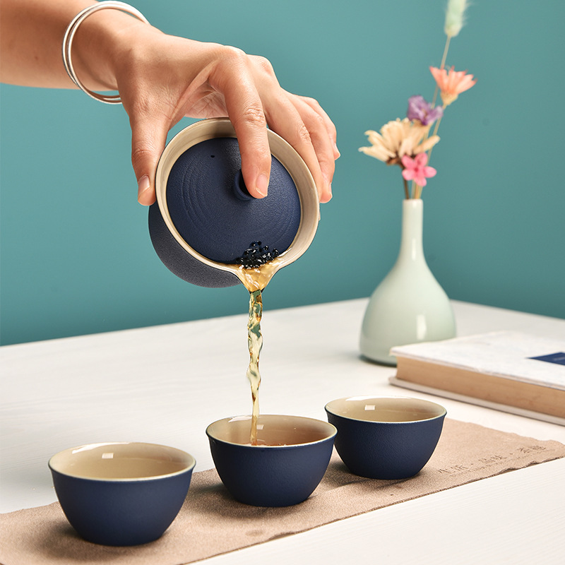 旅行茶器屋外工夫茶器一本三杯携帯型快客杯小セットお茶プレゼントとロゴ