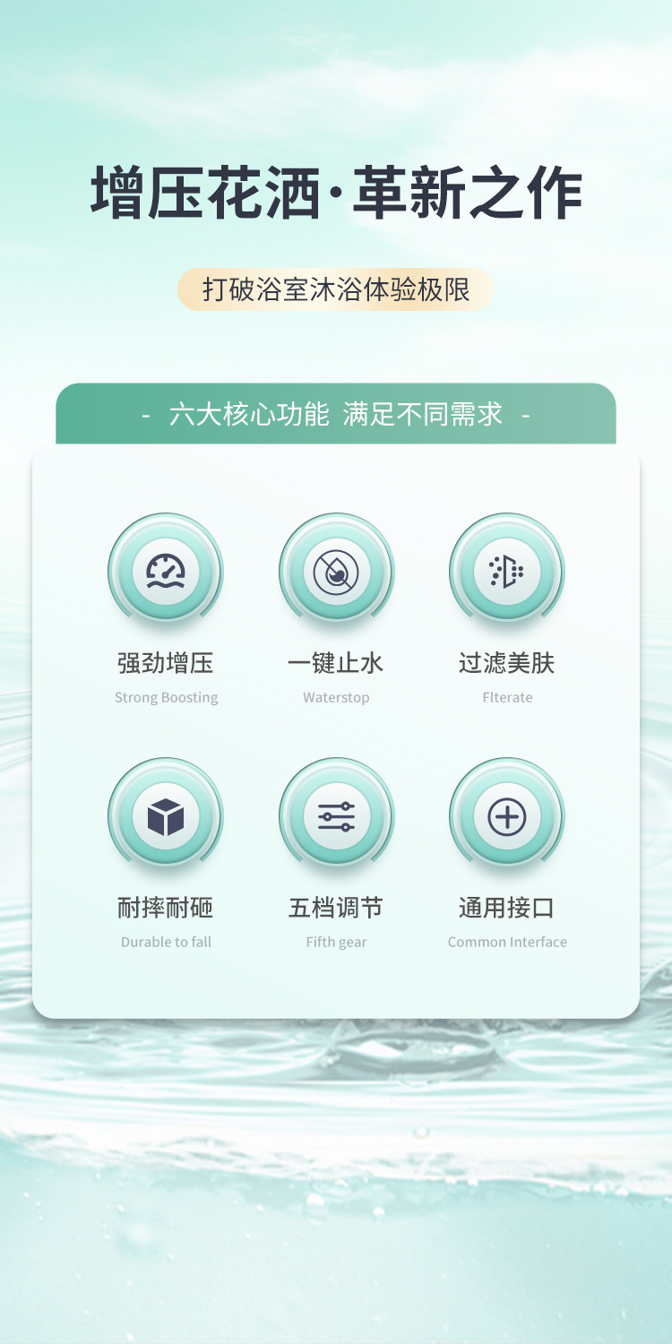 国境を越えた多機能ピアノボタンが強い過給シャワーヘッド浴室入浴濾過シャワースプレー蓮蓬頭