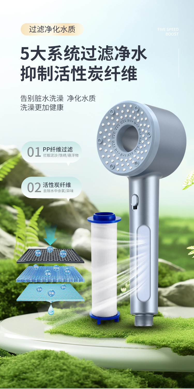 濾過増圧シャワーヘッド入浴四五段手持ちシャワーセット風呂蓮蓬頭給湯器