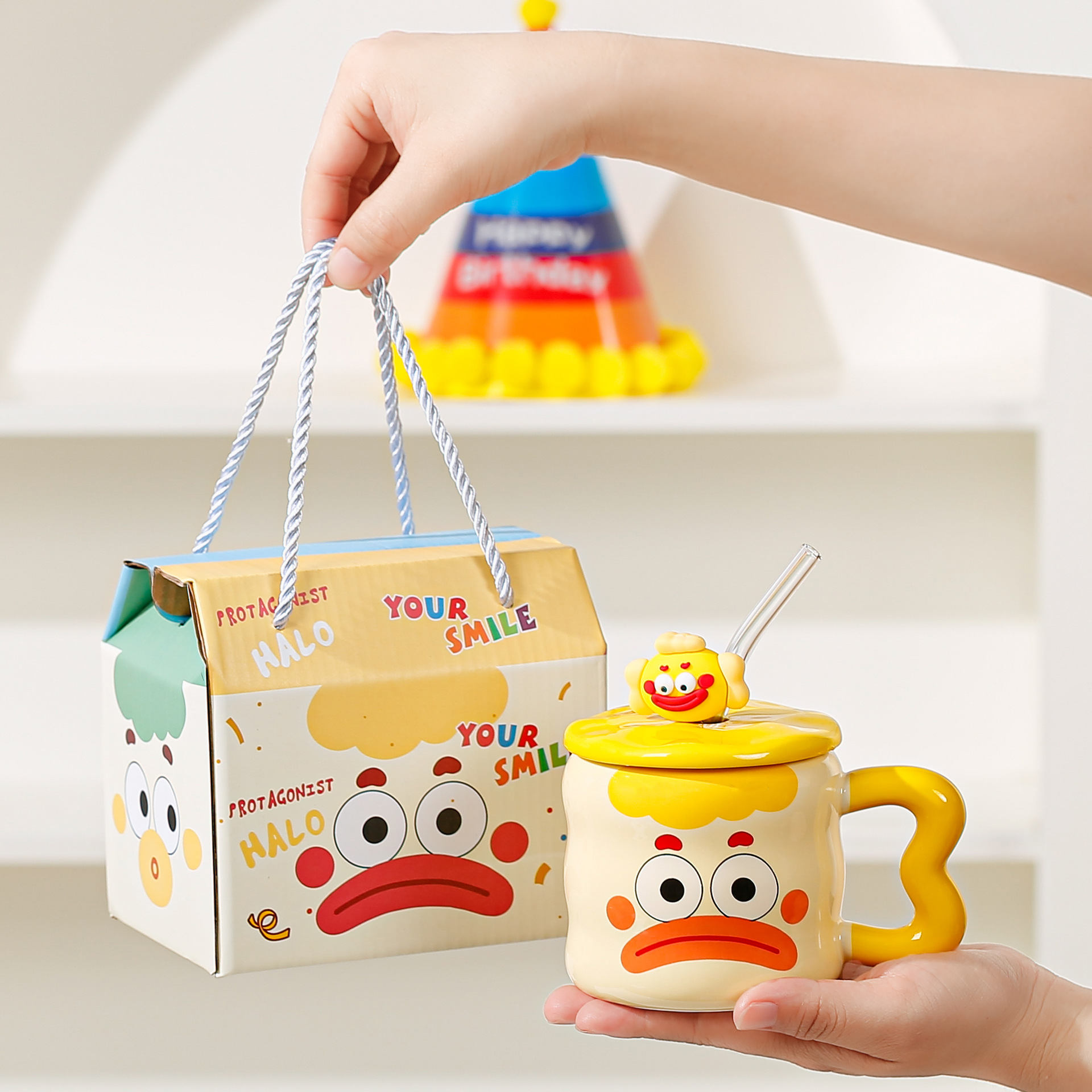 クリエイティブアニメ表情陶磁器カップ実用エナメルカップ大取っ手コップ開業イベントお土産マグカップ