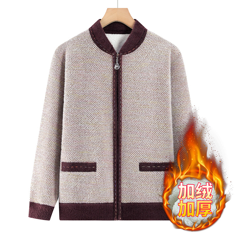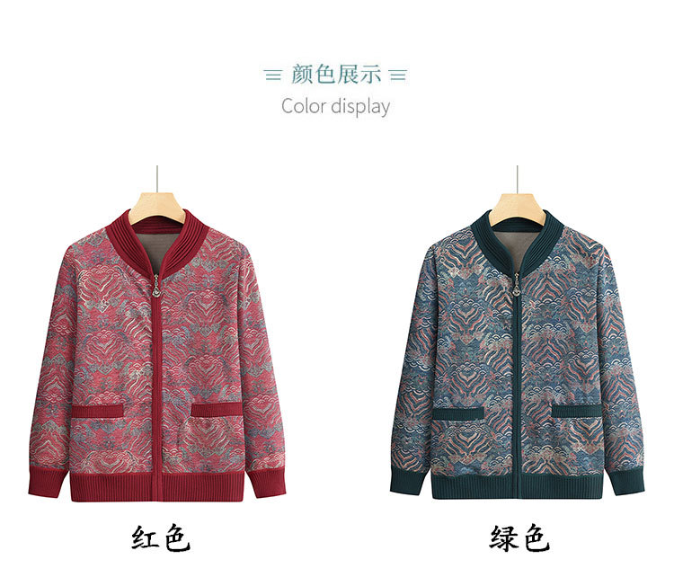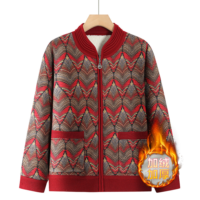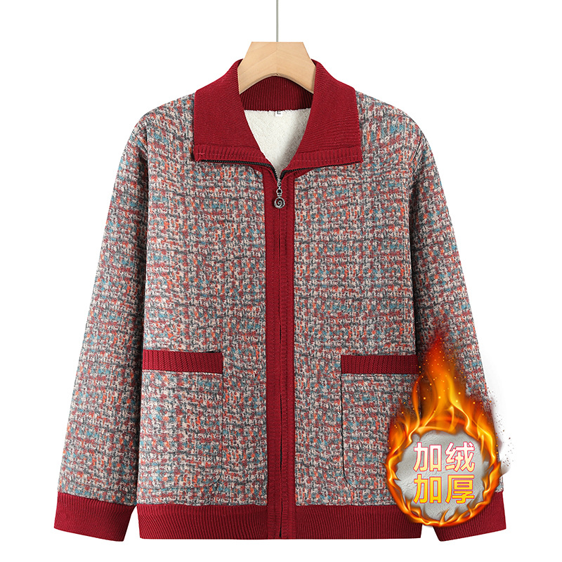 中老年秋冬装新款妈妈装加绒加厚针织衫外套奶奶装保暖开衫毛衣女