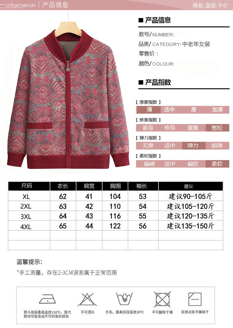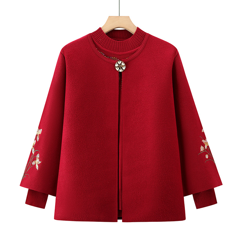 中高年婦人服秋冬長袖ニット上着ゆるい母服丸襟打底カーディガン薄手セーターコート