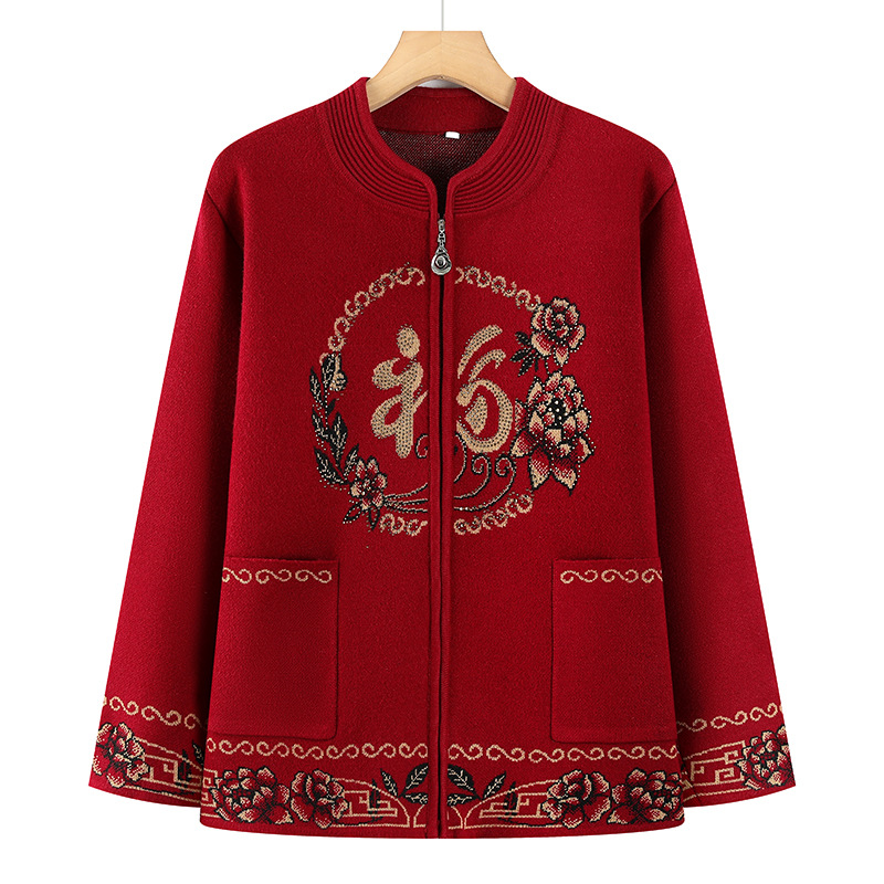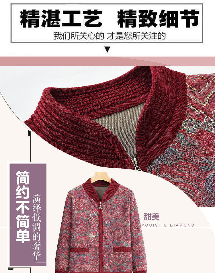 中老年妈妈装秋冬装开衫外套新款加厚上衣奶奶装休闲针织衫毛衣女
