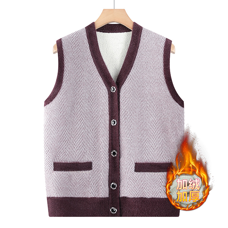2025新款秋冬装针织衫中老年妈妈装加绒加厚马甲女奶奶装保暖背心
