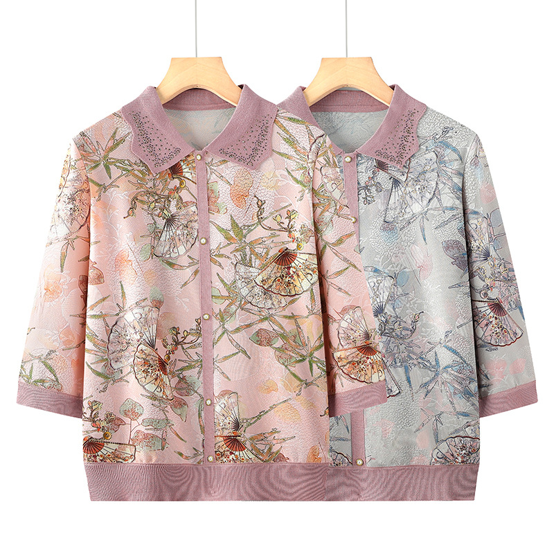 中高年の婦人服のスーツのおばあさんの夏のシャツの氷の杭州のシルクの老人のパジャマのお母さんの夏服の中年