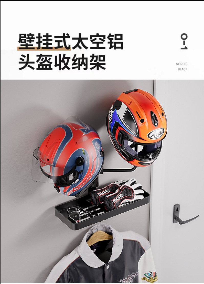 摩托车头盔架电动车机车帽子收纳壁挂安全帽展示架挂墙帽托置物架