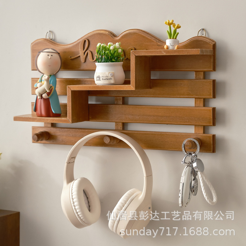 アメリカンスタイルの玄関クリエイティブ無垢材収納ラックドアレトロ壁掛け衣類ラックキーハンガー