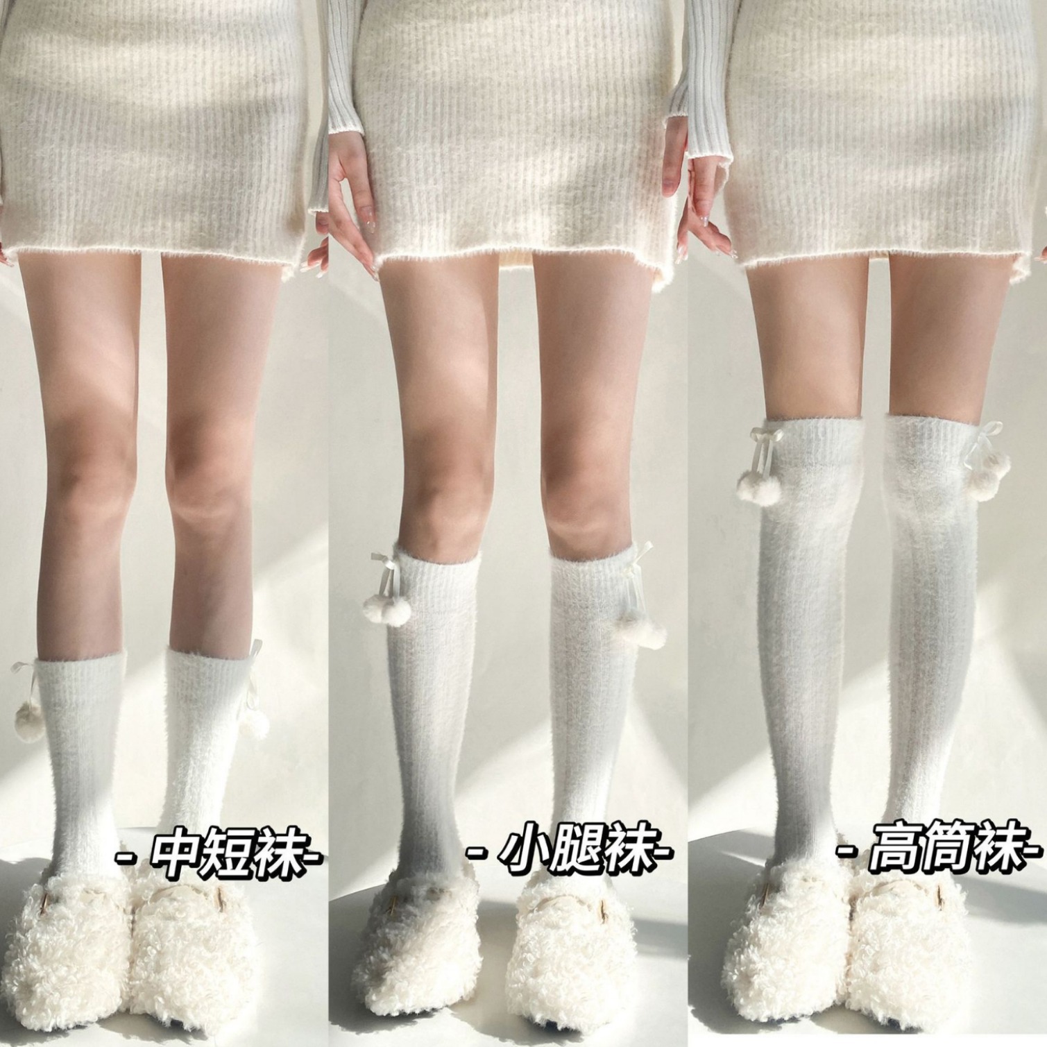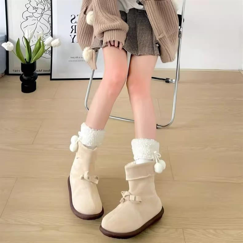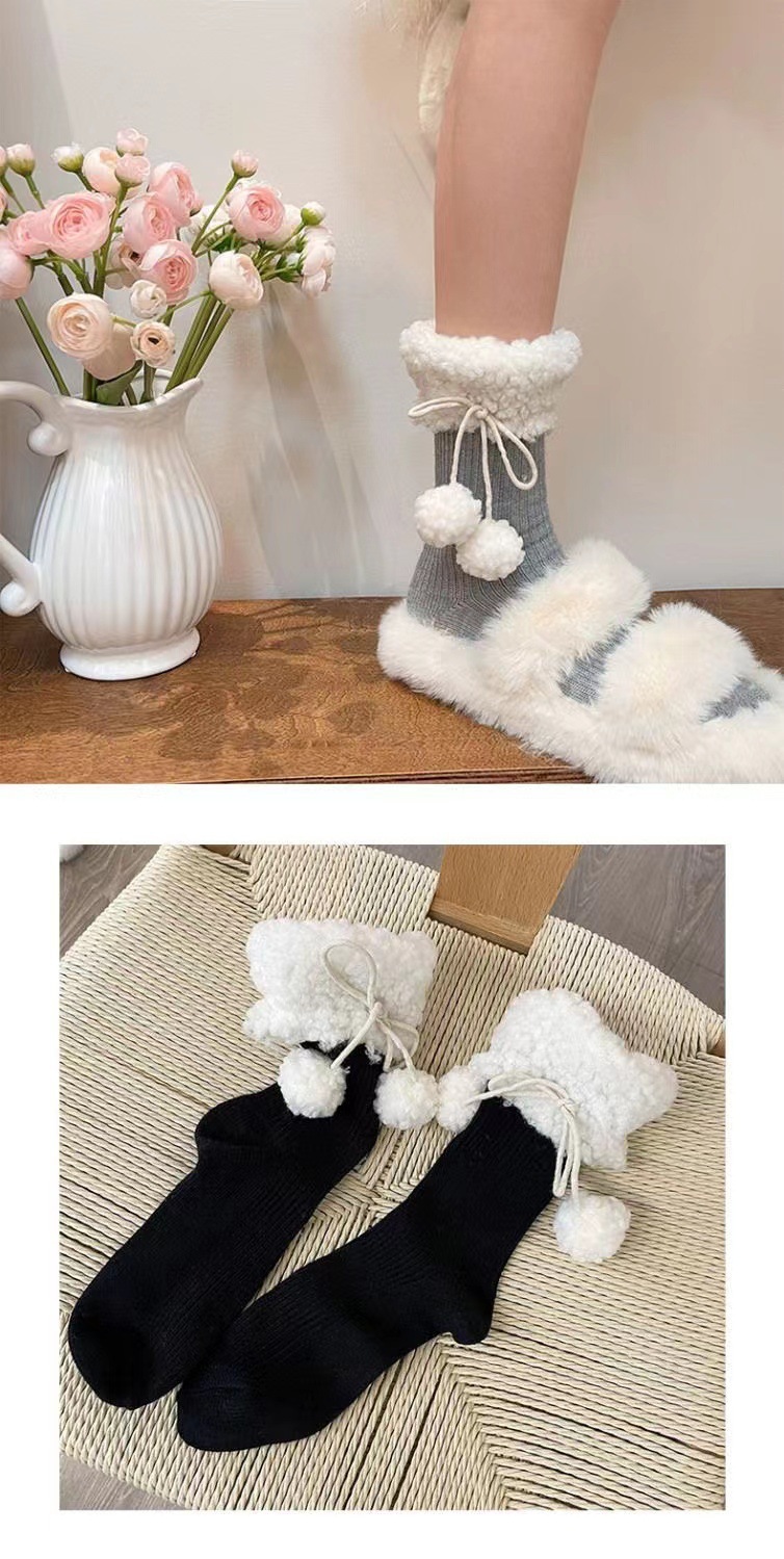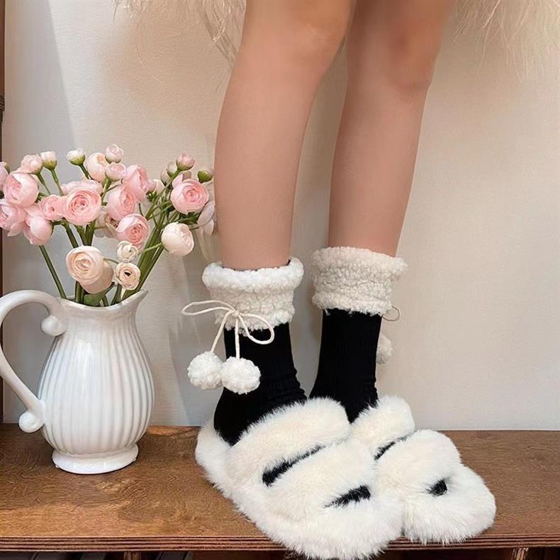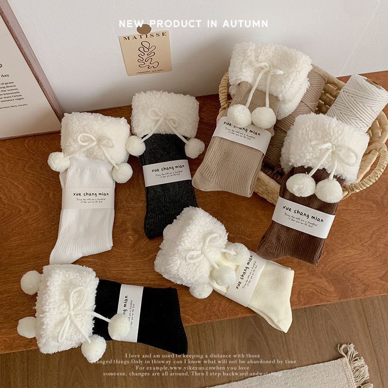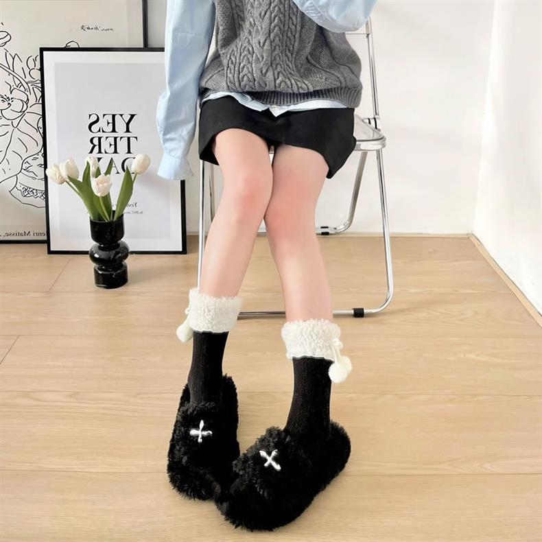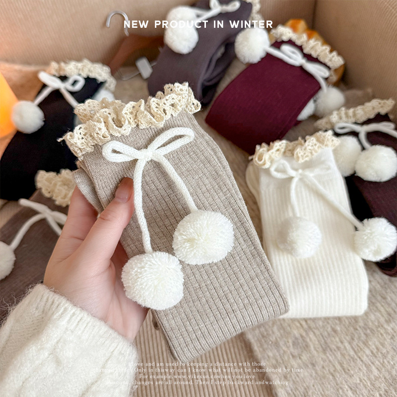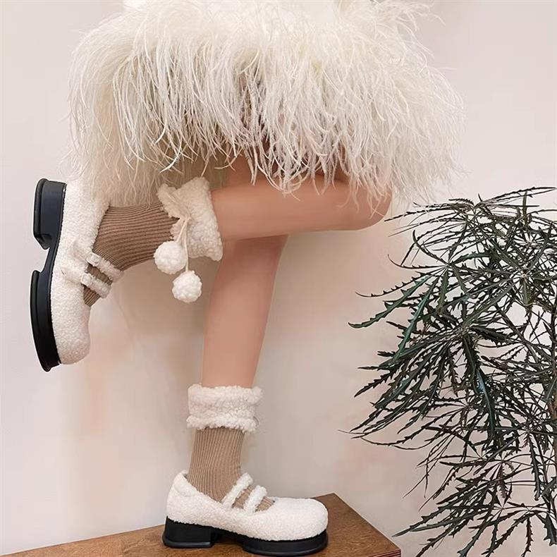 靴下女性秋冬新商品羊小毛玉中筒靴下日系jkかわいい純色保温ロリータストッキング
