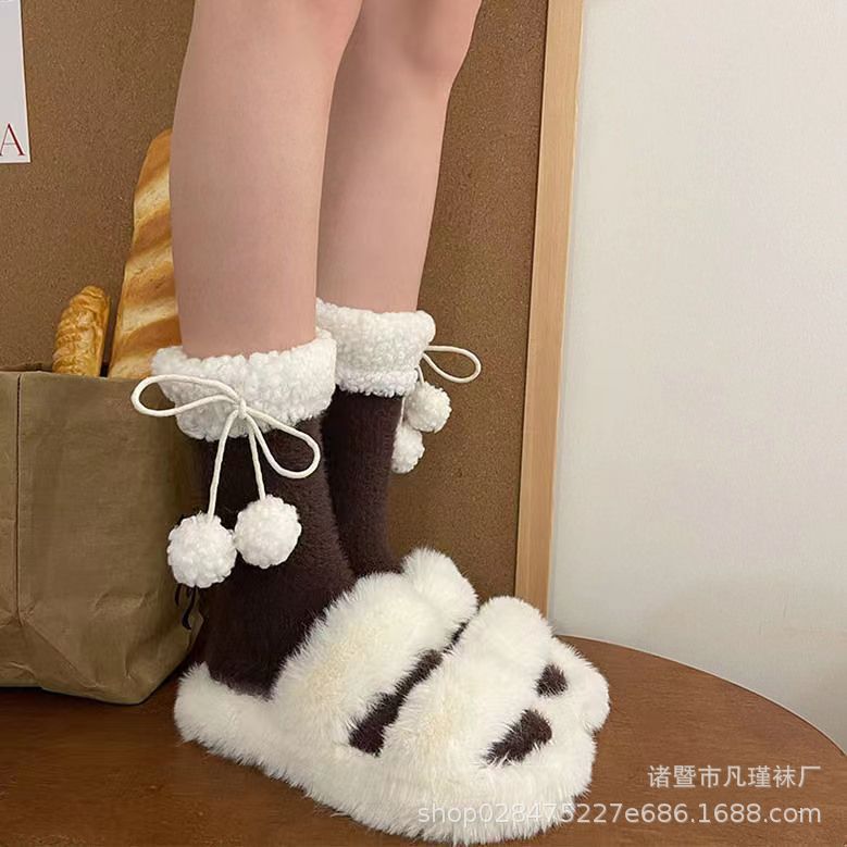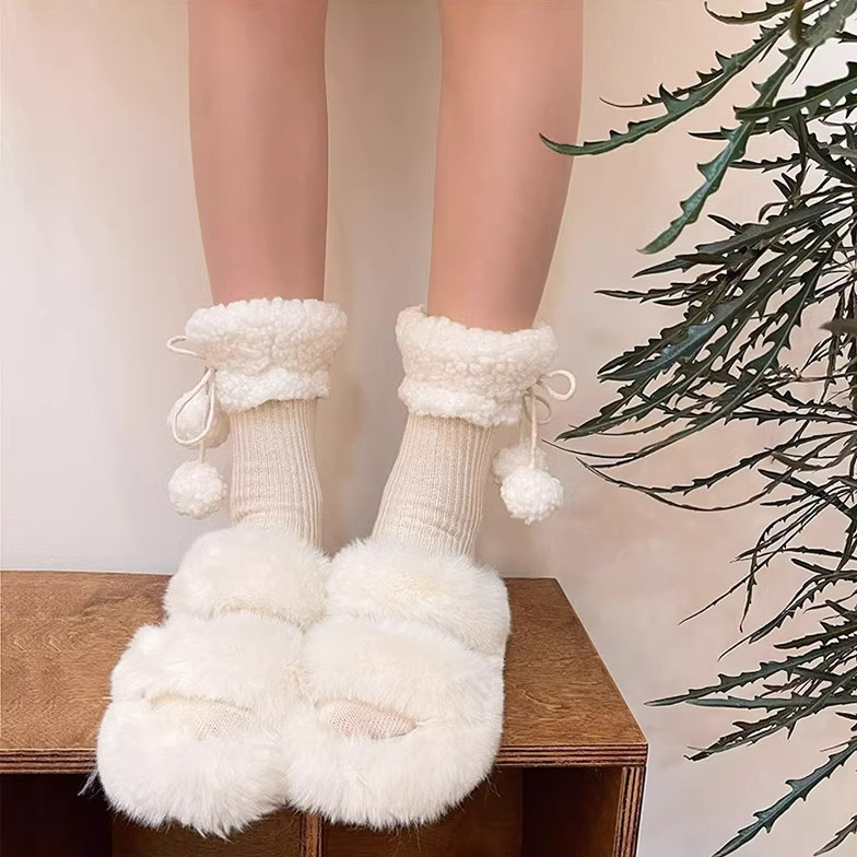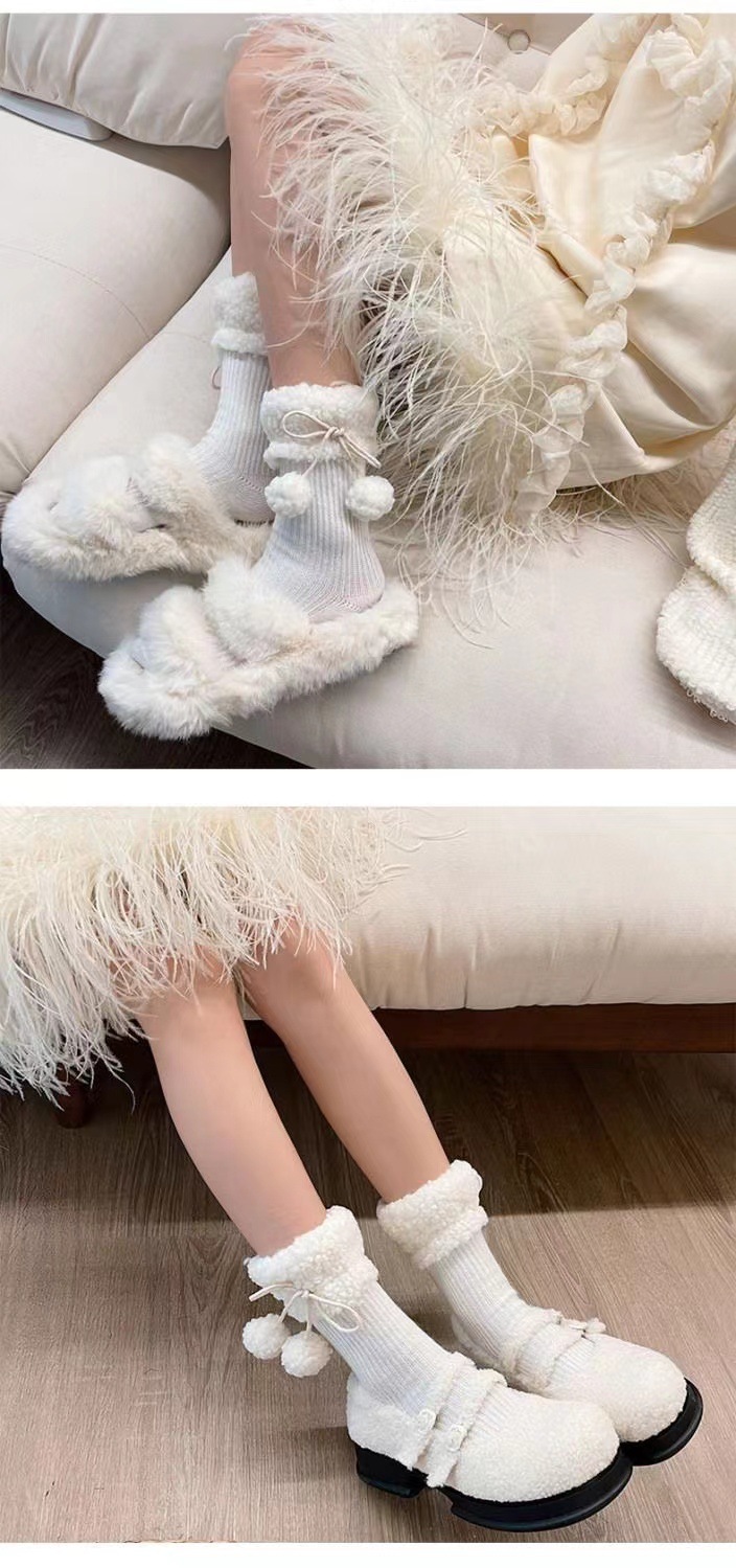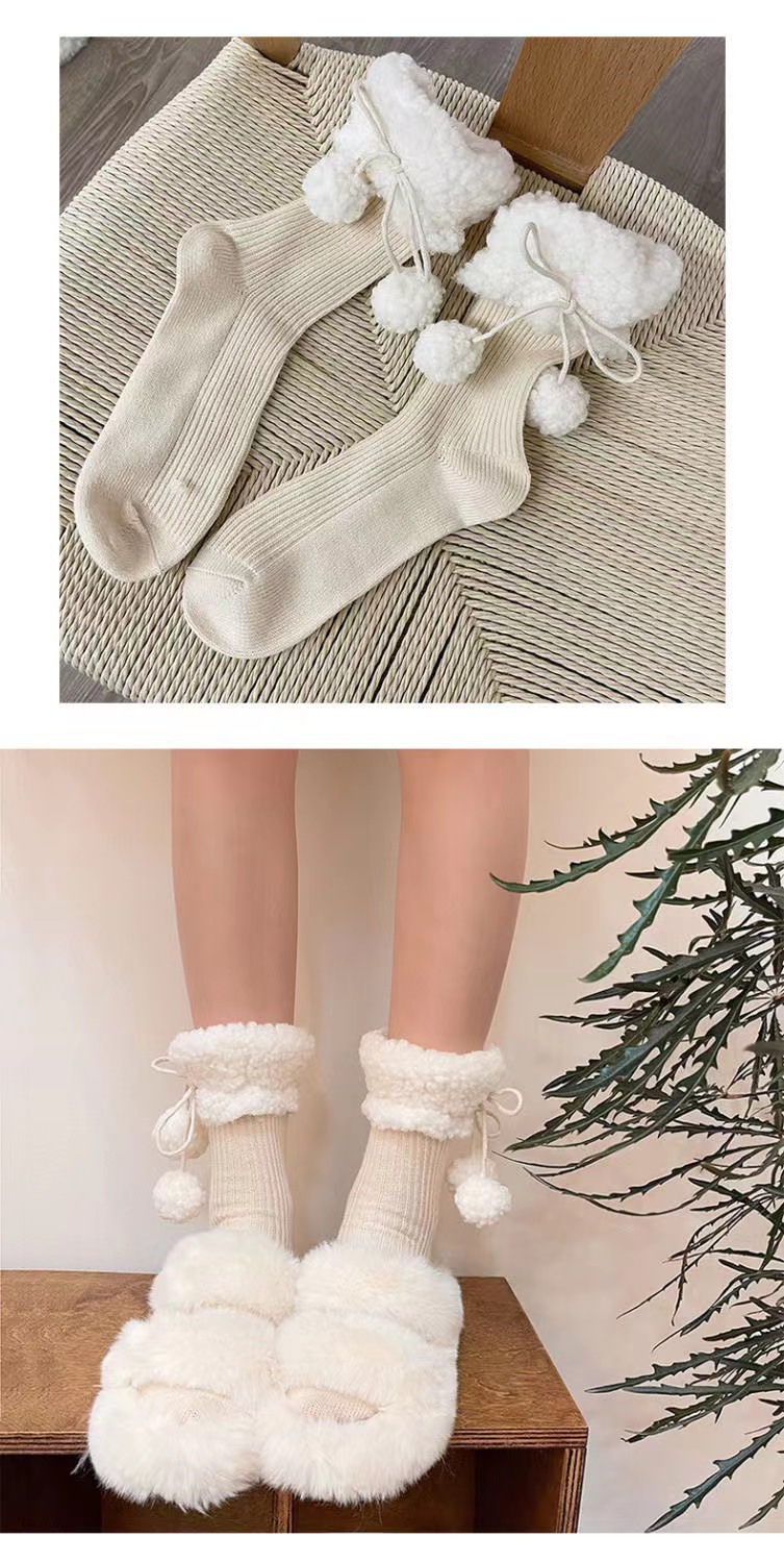 秋冬の新型の柔らかいモチモチ毛玉のぬいぐるみの靴下の靴下の山の靴下のかわいい保温の百合jkの中筒の靴下のミルクの白色