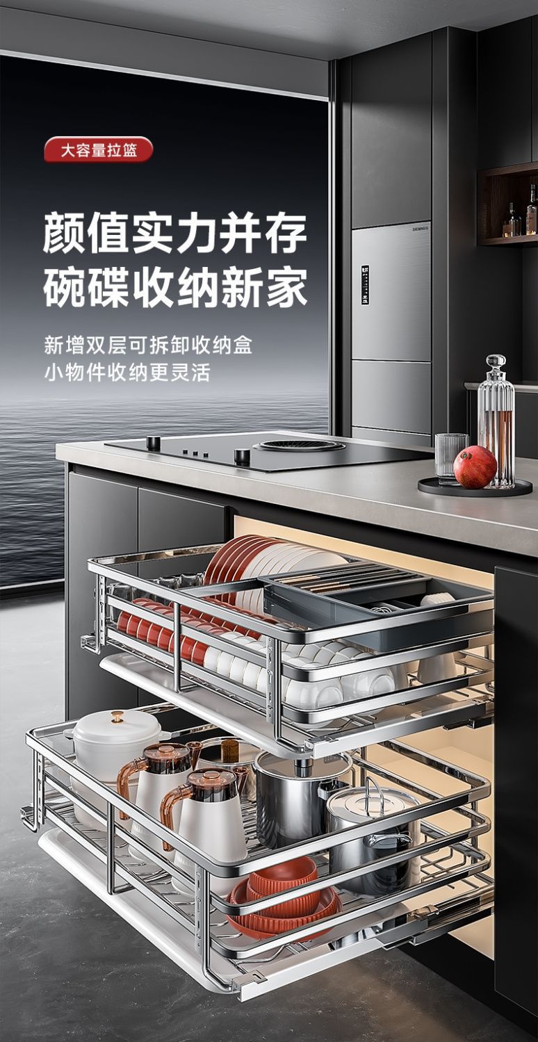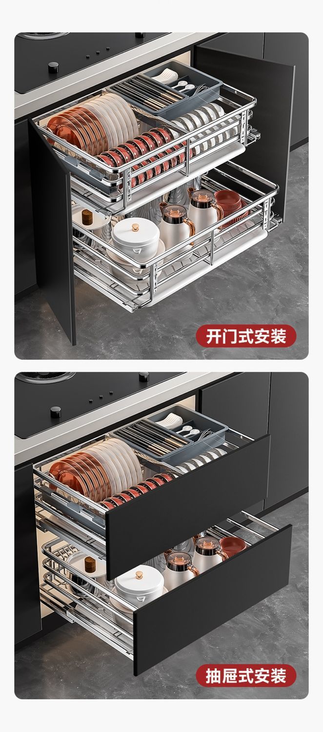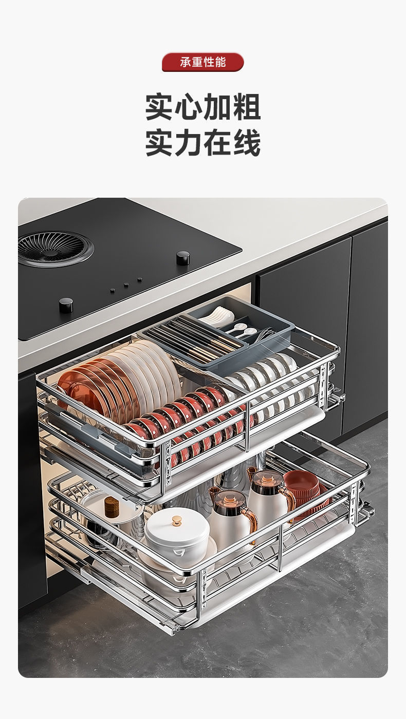 台所戸棚304ステンレス二重引き出し式食器棚ダンピング食器棚収納調味料