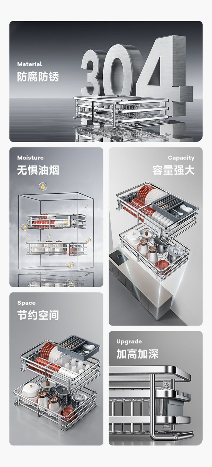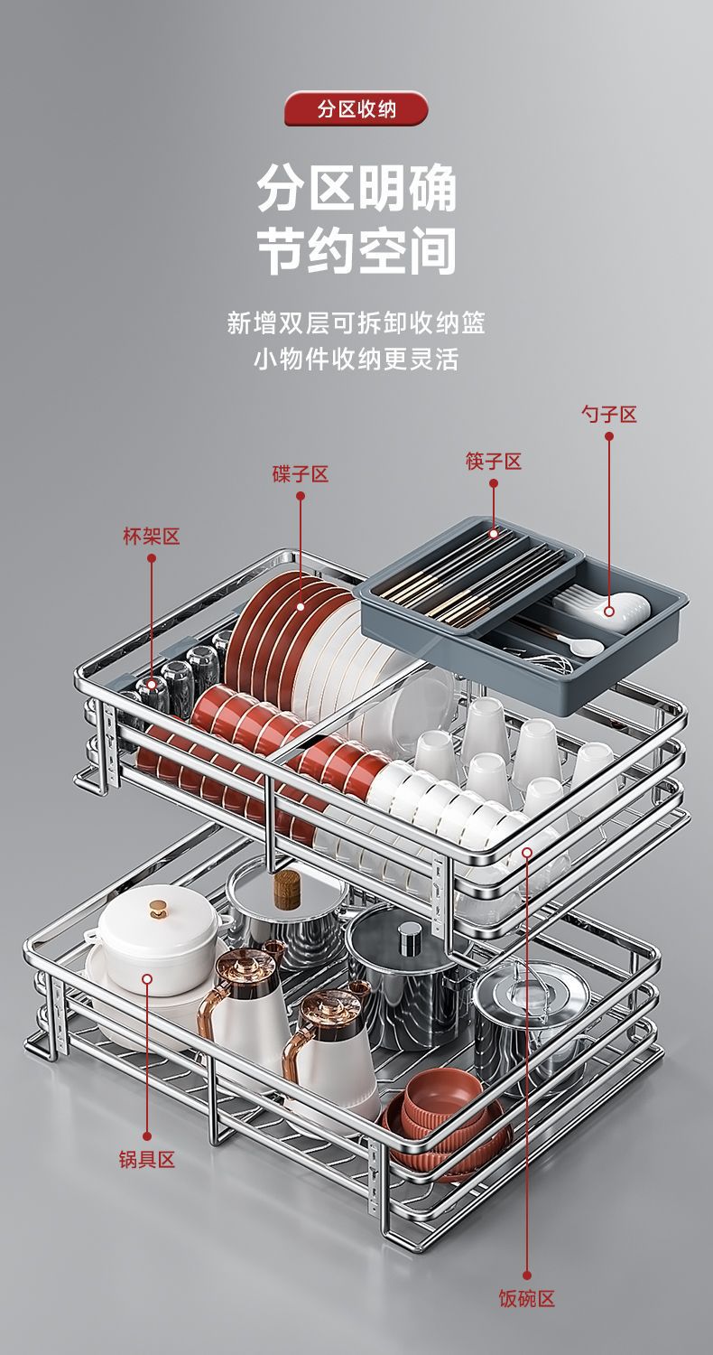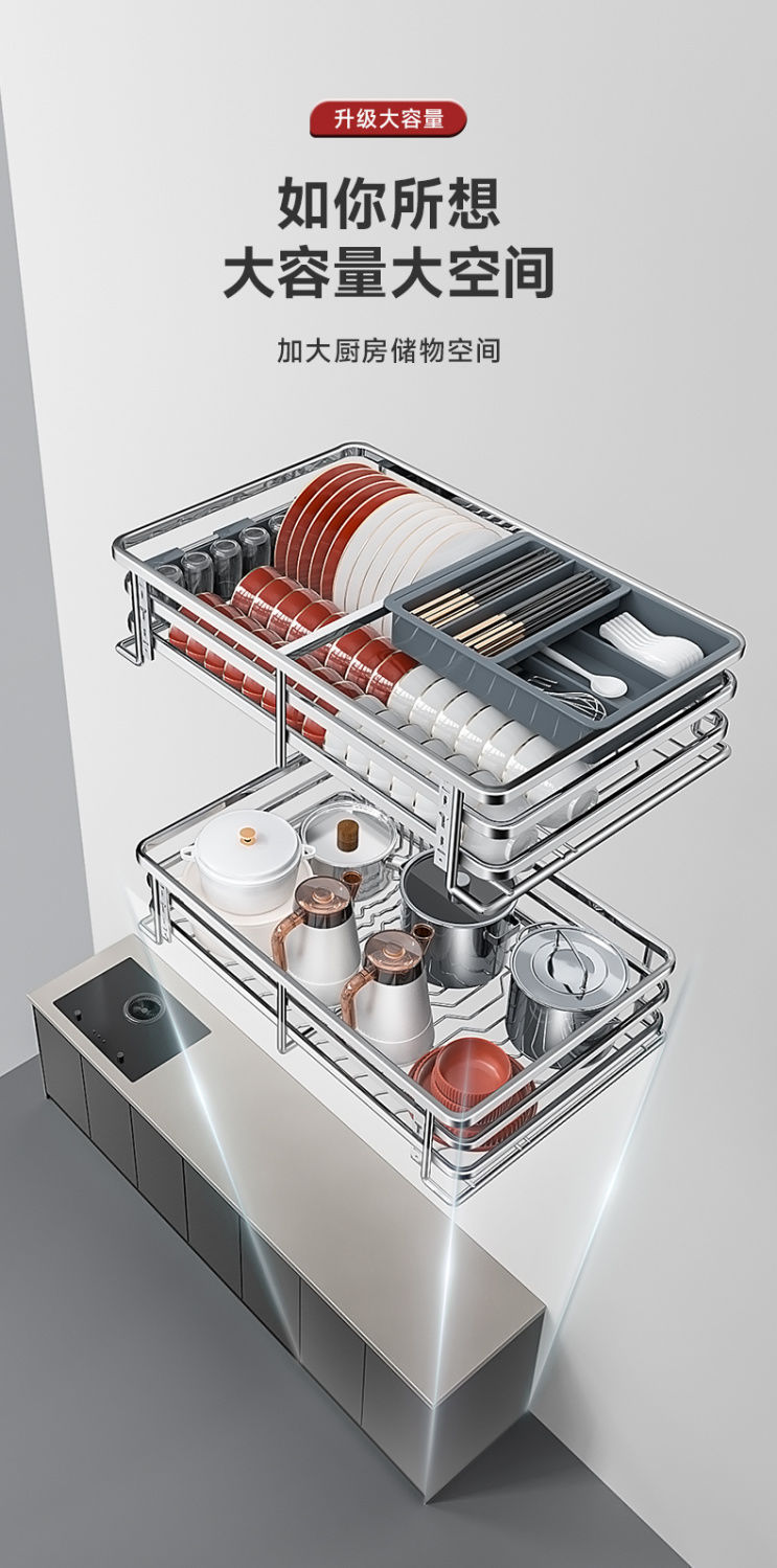 台所戸棚304ステンレス二重引き出し式食器棚ダンピング食器棚収納調味料