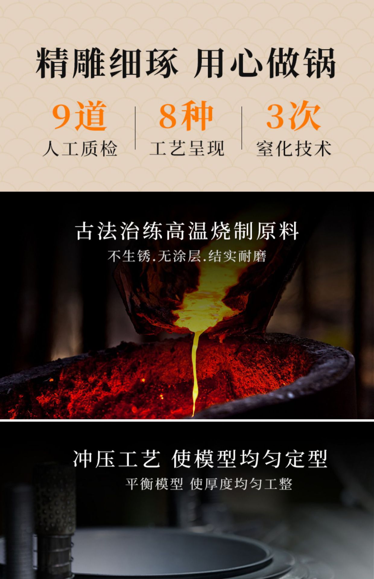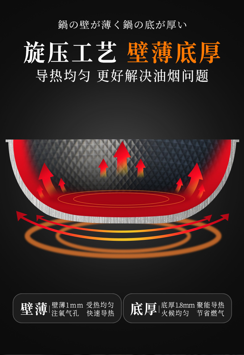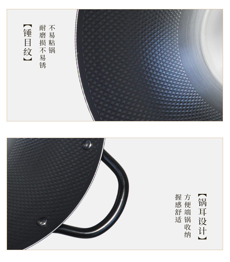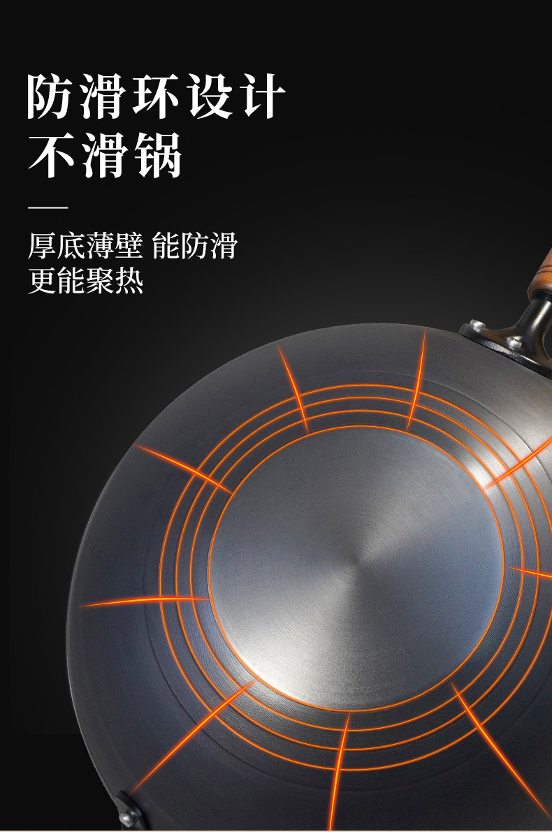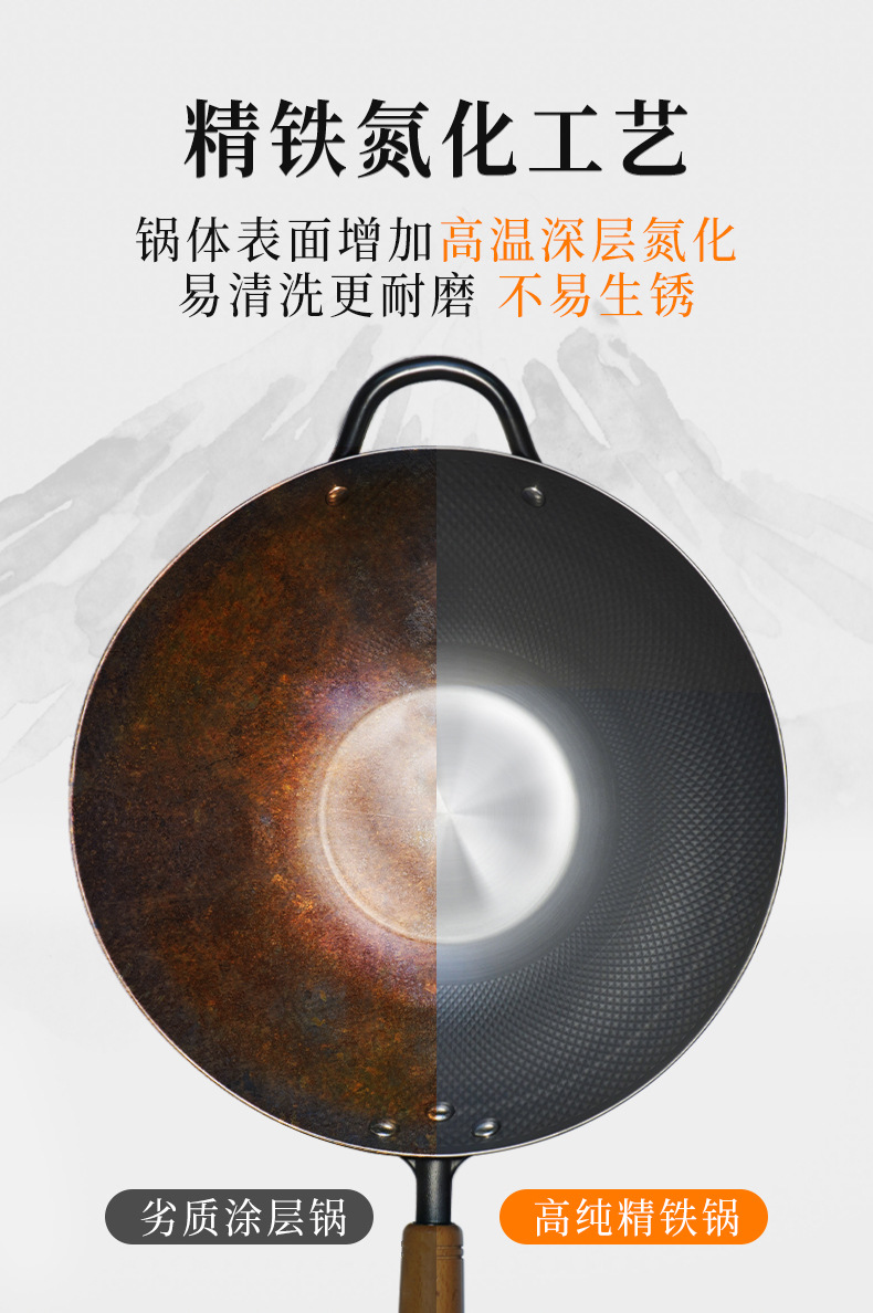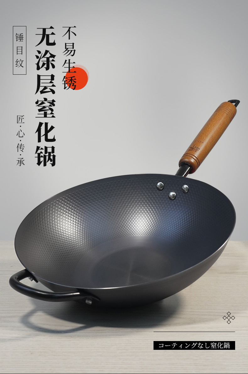 ドイツprefered中国式窒化鋳鉄爆煎鉄鍋家庭用コーティングなし物理非粘着電磁炉炒め鍋