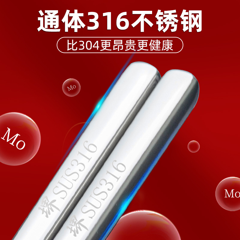 食品グレード 316 ステンレス鋼の箸抗菌家庭用ハイエンドセット滑り止め、防カビ、厚みのあるソリッドデイリーソリッドカラー