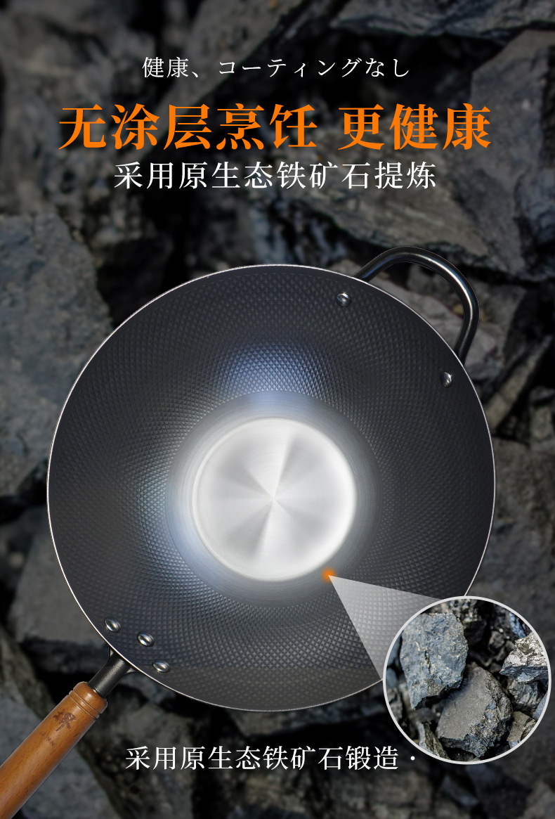 日本の輸入極鉄炒め鍋の古いコーティングのない家庭用熟鉄炒め料理は鍋のガスコンロにくっつかない