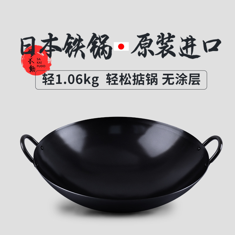 堺不動日本オリジナル輸入両耳中華鍋丸底未塗装昔ながらの鉄鍋家庭用ガスストーブ鉄鍋