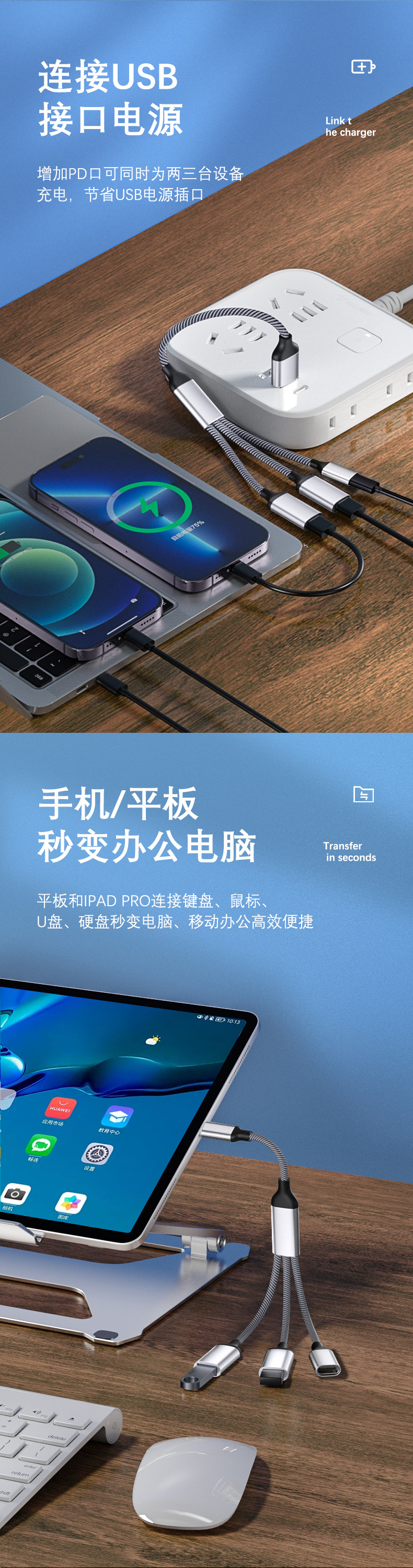 Type-cスマート多口エクステンダースプリッタ充电マルチインターフェースOTGコンバータ携帯电话pcハブ