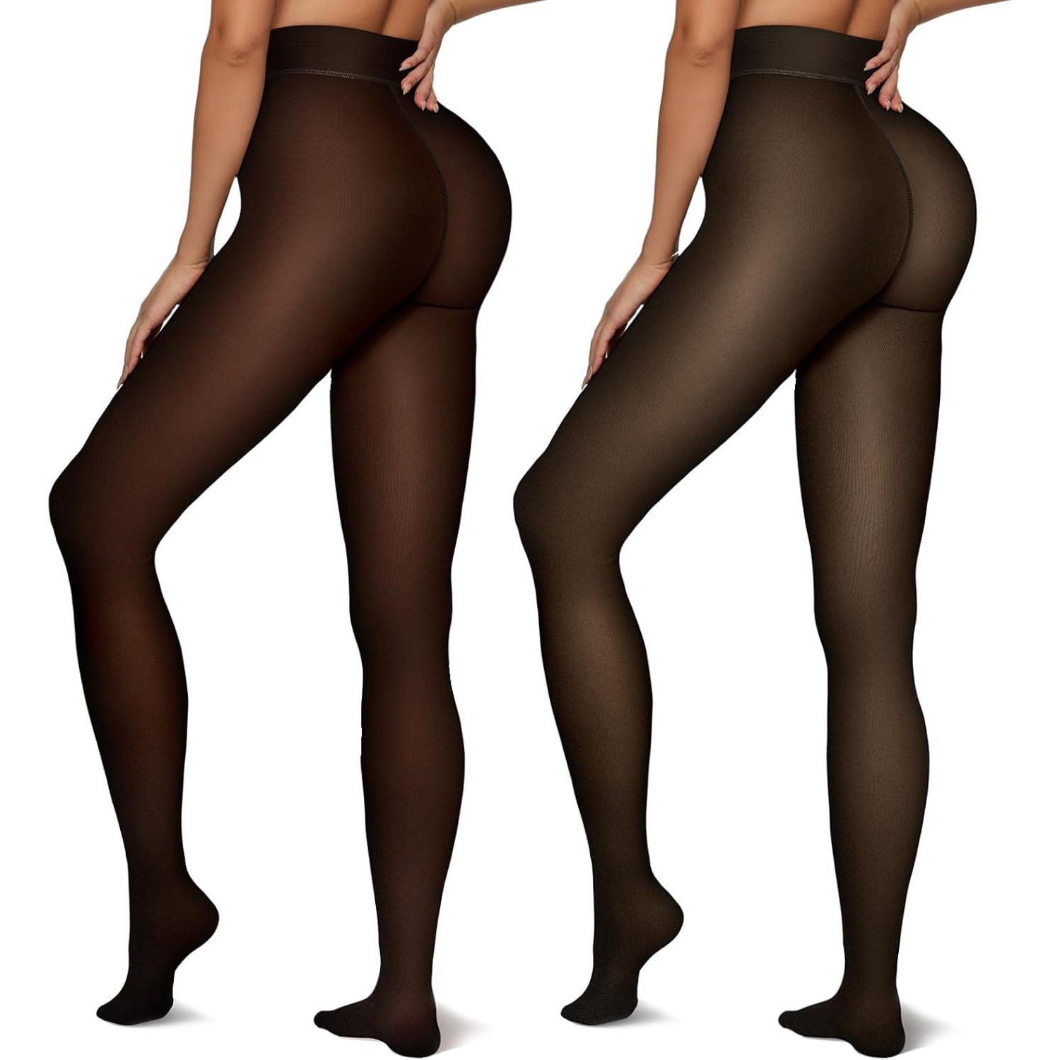 跨境加大码2双装抓绒内衬紧身裤女式裆部单接缝线保暖透明连裤袜