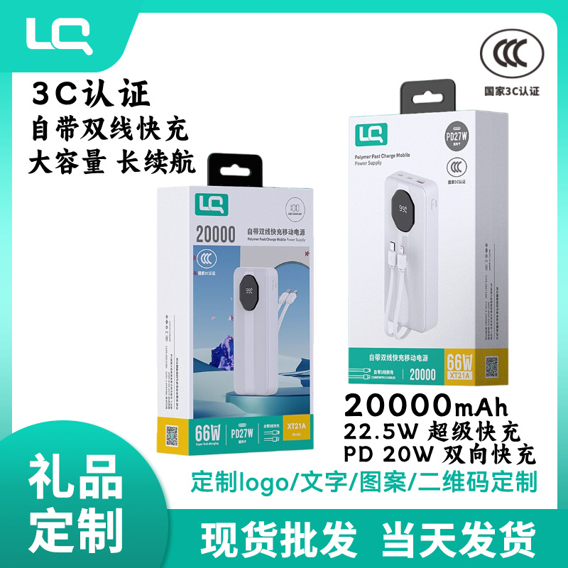 3C認証モバイルバッテリー20000mAh内蔵ケーブル22.5W PD20W急速充電大容量20000mAhモバイルバッテリーカスタム