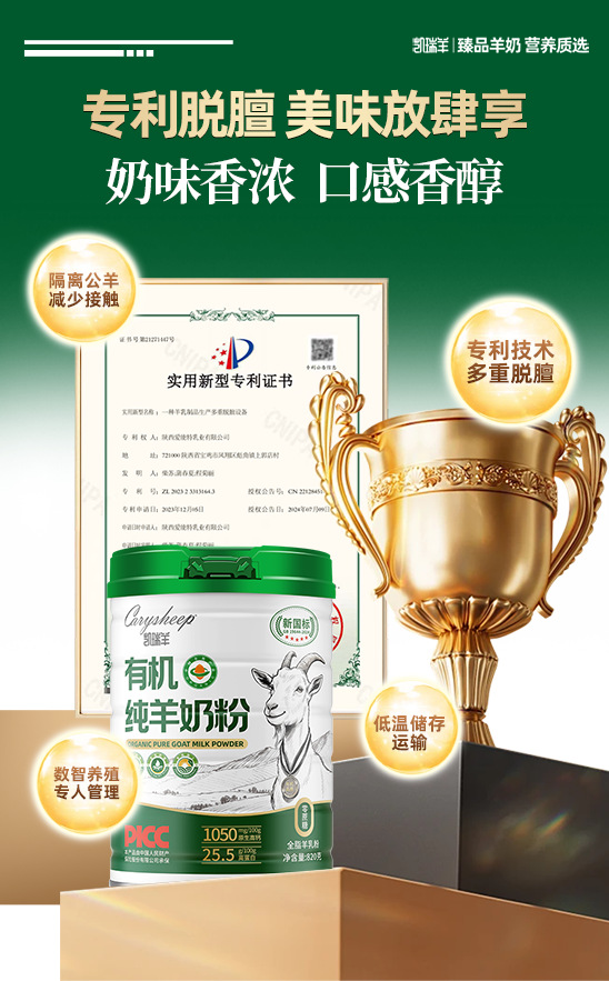 凯瑞羊袋装纯羊奶粉840g脱膻新鲜早餐高钙正品中老年奶粉青少年