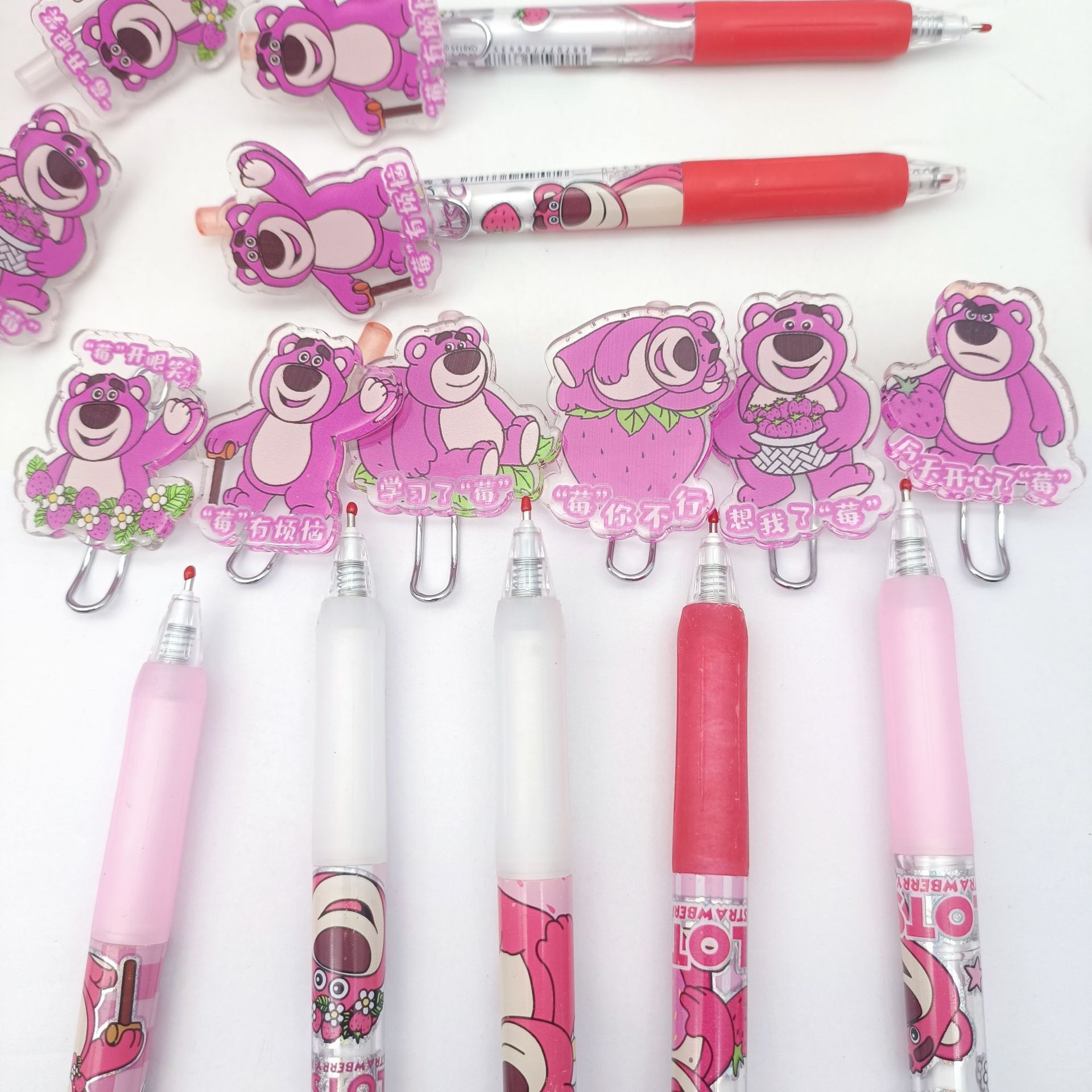 アニメのイチゴの熊のペンの学生は字を書いて中性のペンを書きます。