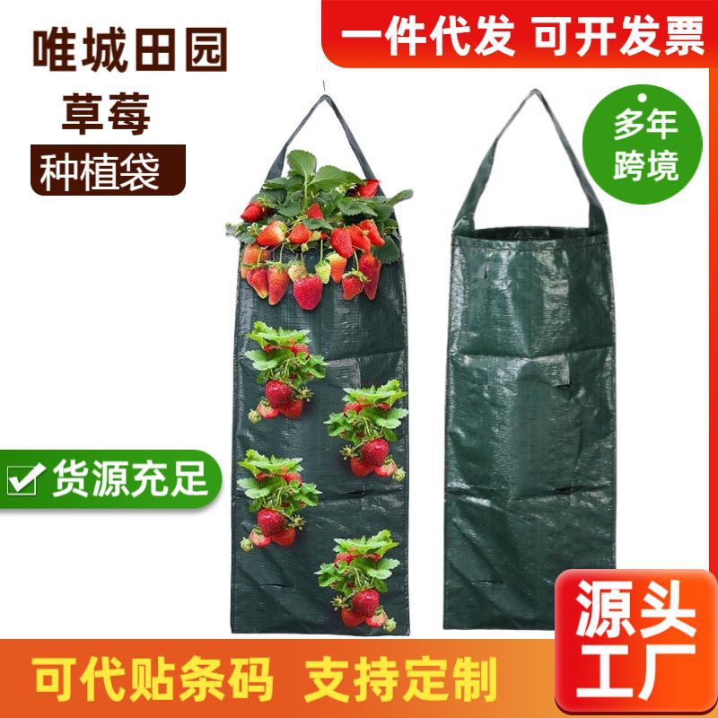 吊り下げ式イチゴ栽培袋、8穴以上、多穴イチゴ栽培袋、メーカー直販、PE栽培袋、越境供給