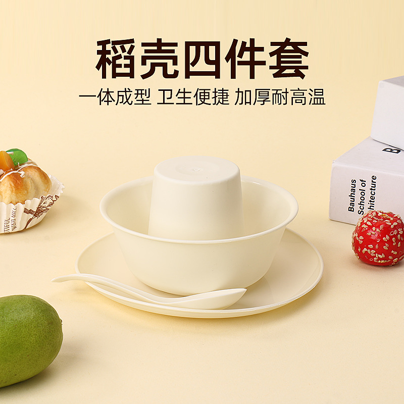 厂家现货稻壳一次性餐具4件套可独立包装可降解环保环保餐具