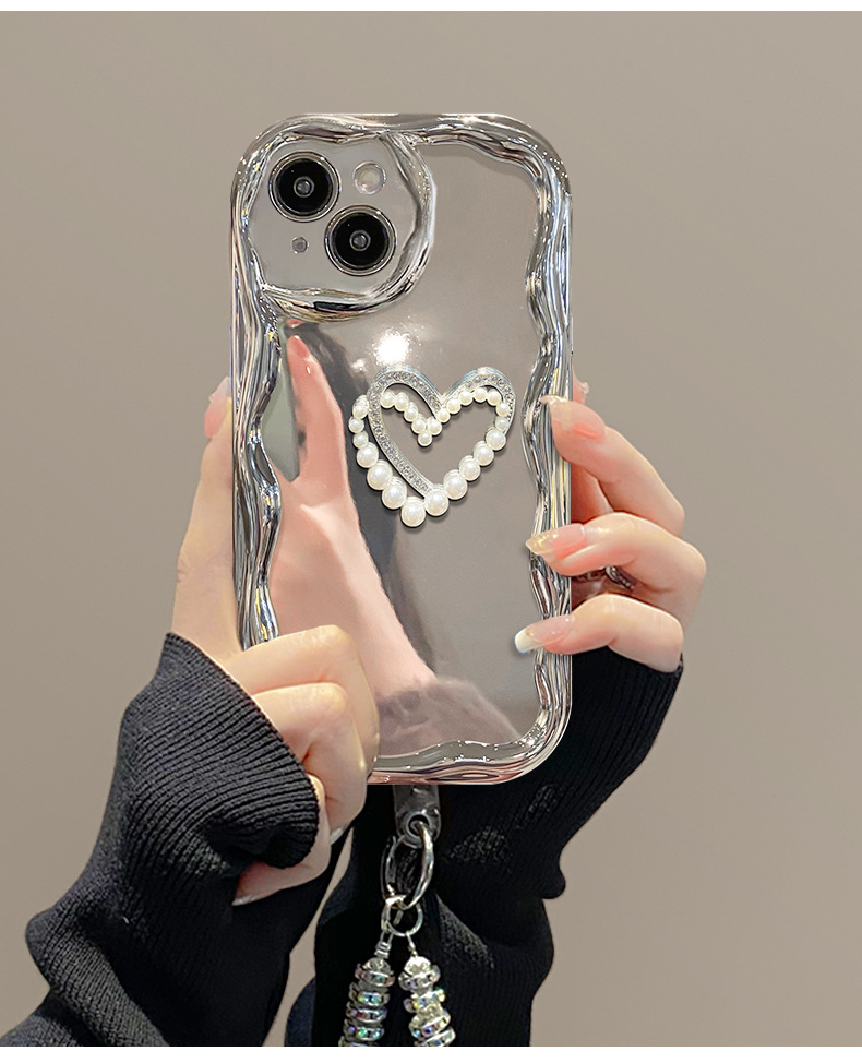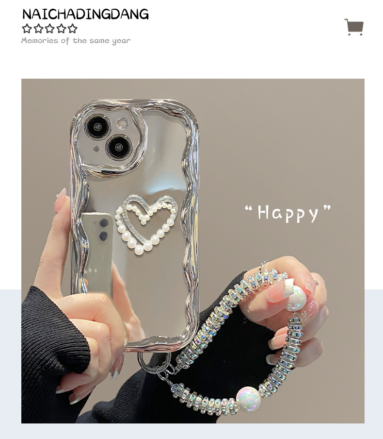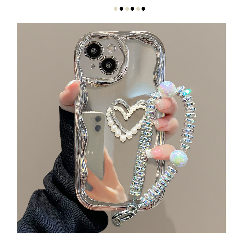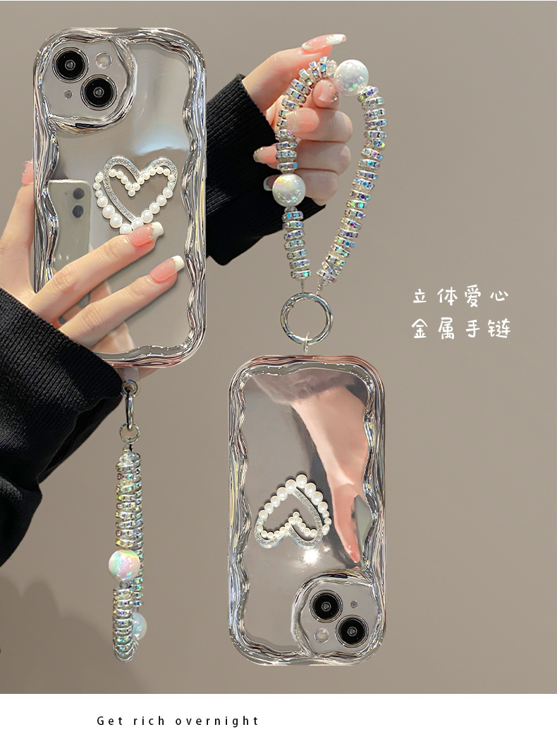 クリーム模様-メッキ銀 + 立体愛シール + ブレスレット,クリーム模様-メッキ銀 + 立体愛シール