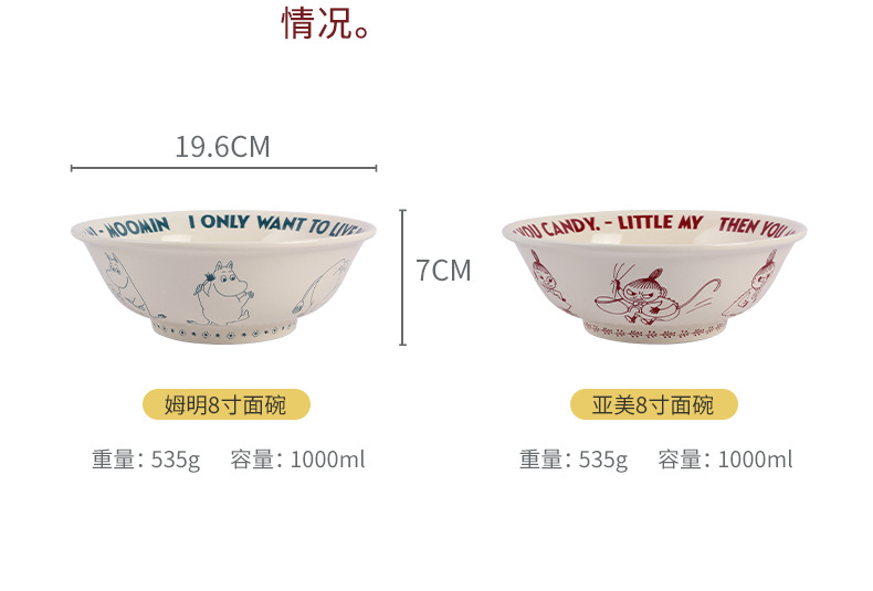 moomin姆明卡通陶瓷碗米饭碗面碗家用儿童高颜值汤碗