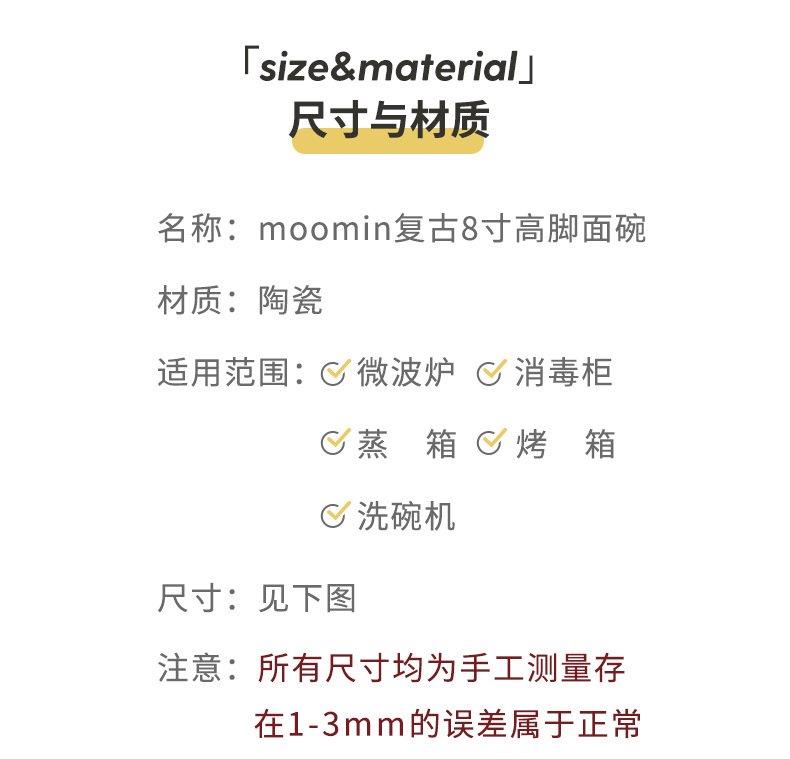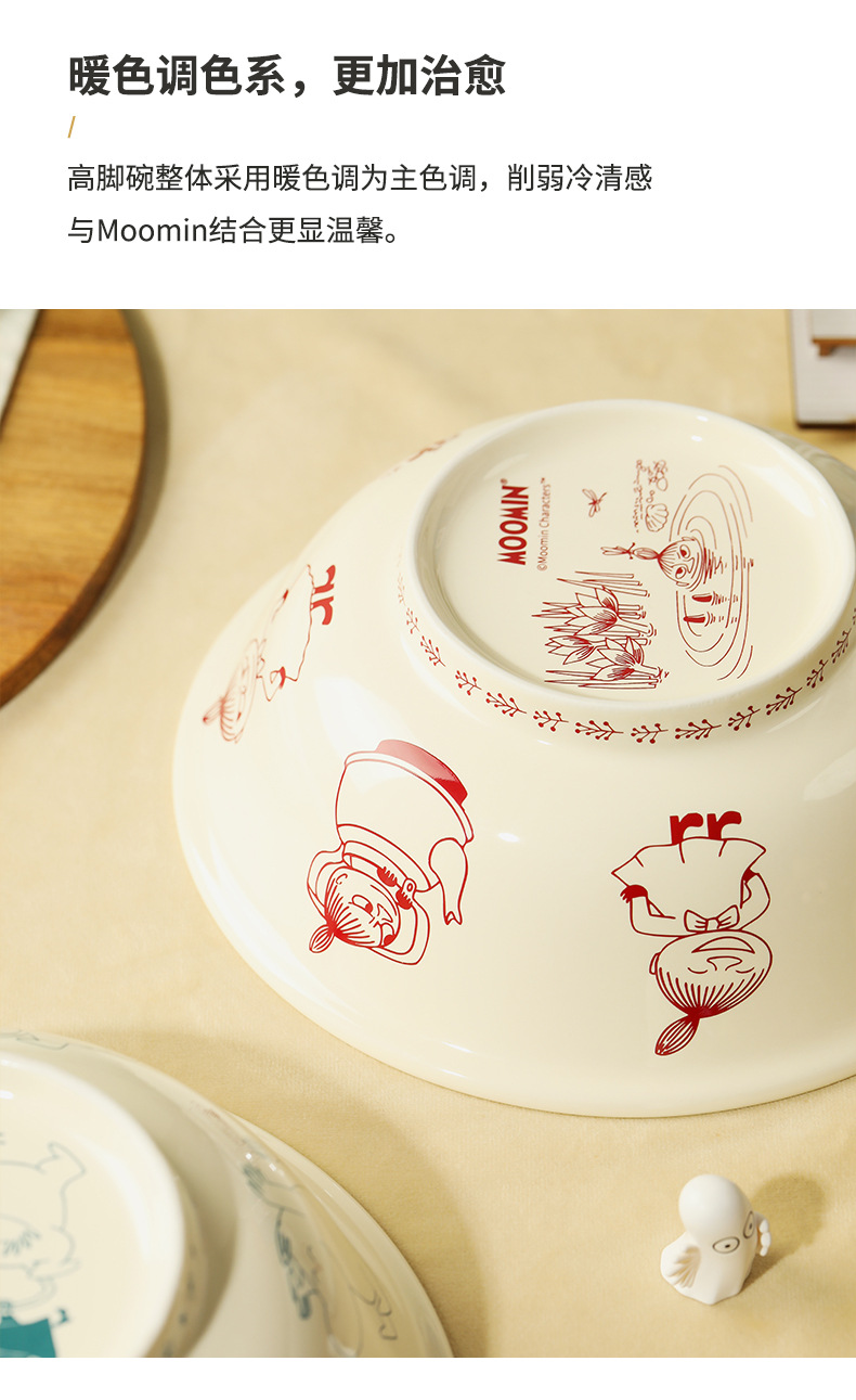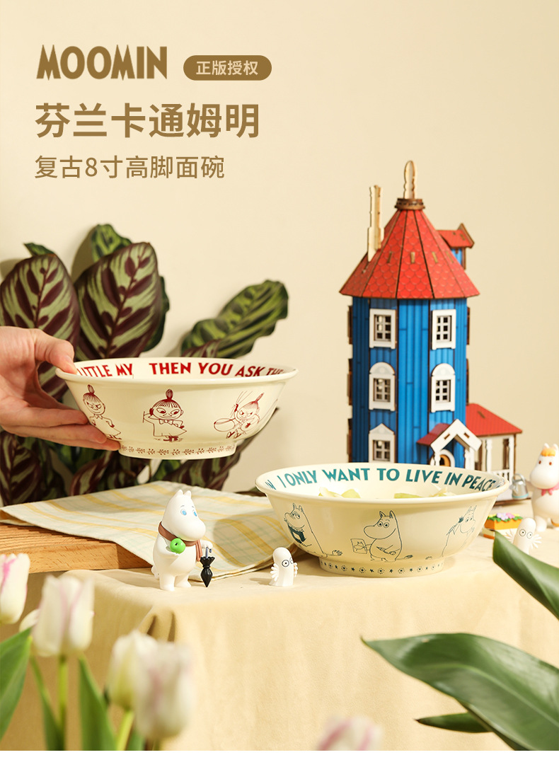 Mominムーミンレトロ8寸の高足碗の家庭用陶磁器は麺を食べます。