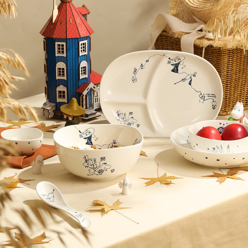 Mominムーミン食器陶磁器碗皿漫画碗皿家庭用創意子供ご飯碗スープ碗料理皿
