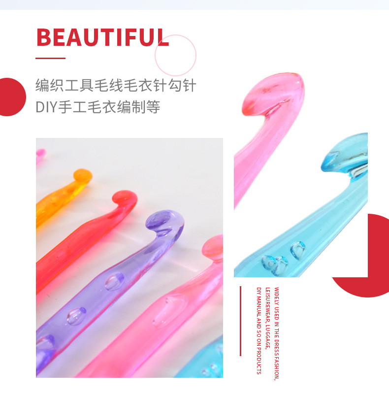 工場直売9本カラープラスチック透明かぎ針水晶かぎ針太い毛糸編みツールレースセーター