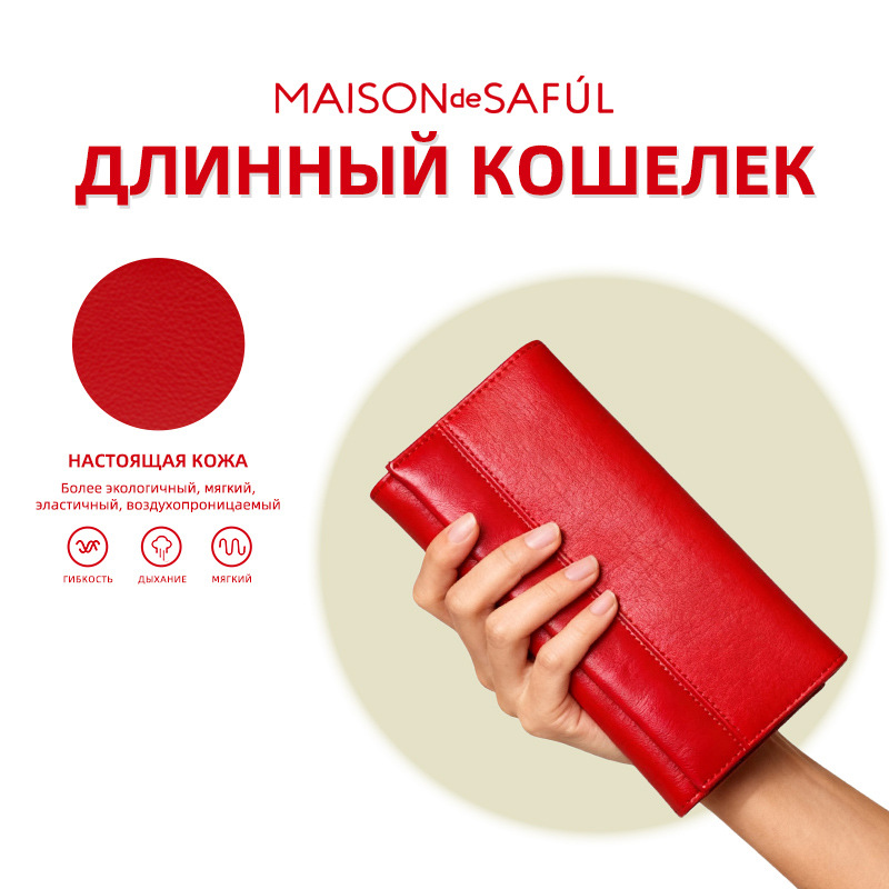 俄罗斯热销真皮手拿包女士多功能时尚复古高级感头层牛皮长款钱包