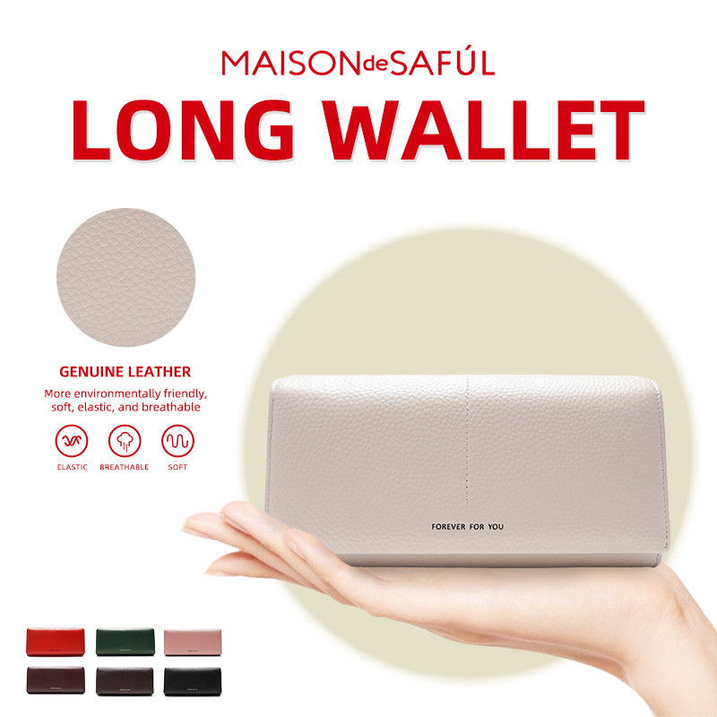俄罗斯新款真皮长款女士钱包纯色简约字母大容量高级感皮革手拿包
