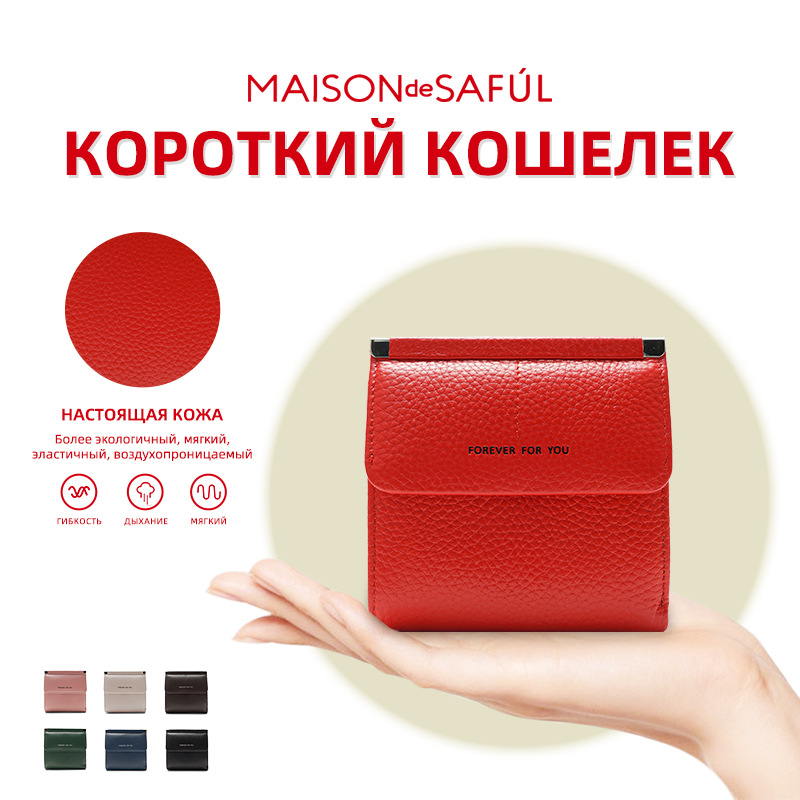 2025新款俄罗斯真皮二折女士短款钱夹时尚按扣头层牛皮女士钱包