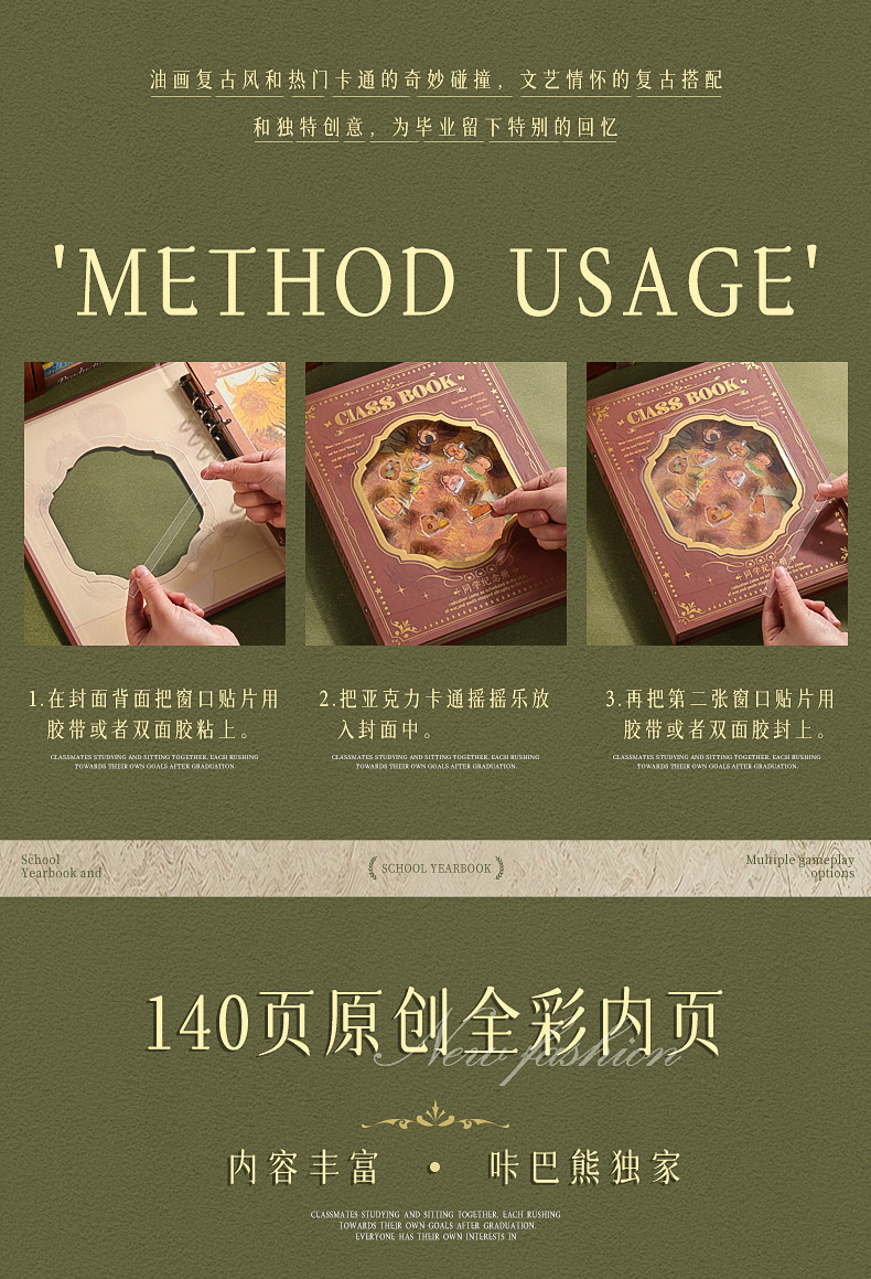 カバ熊のロック音楽のクラスメートは小学生の6年生の卒業記念帳の高い顔の値の2025の新型のバインダーの本を記録します。