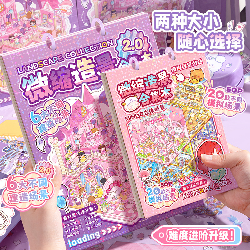 ミニチュアシーンコレクション造園ステッカーブック3Dスタック立体キャビン楽しいかわいい漫画の女の子子供の利益
