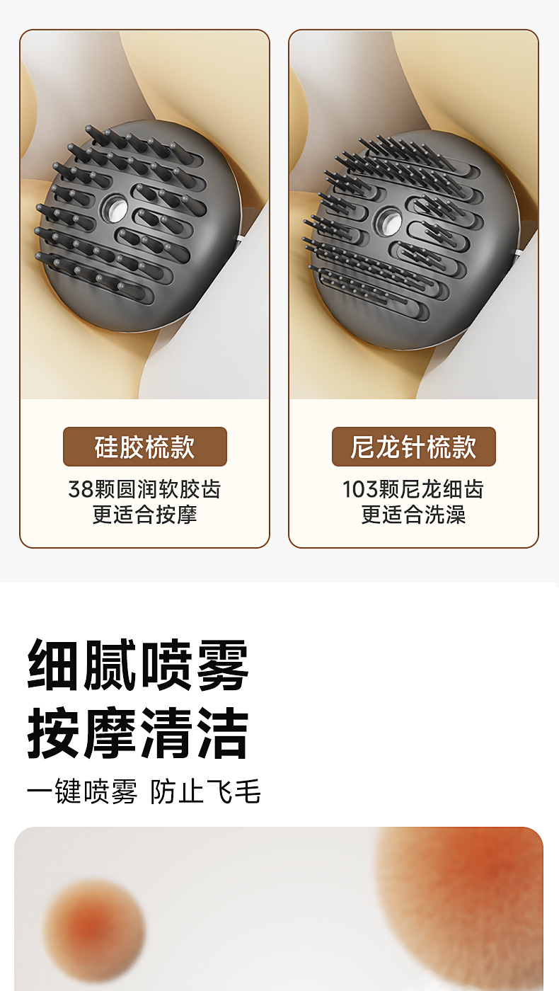 跨境爆款宠物喷雾梳猫狗按摩梳一键喷雾防飞毛梳子宠物除毛刷子
