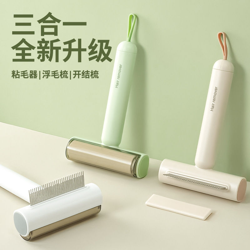 新款三合一宠物梳子不锈钢密齿梳滚筒粘毛器针梳开结梳猫咪梳